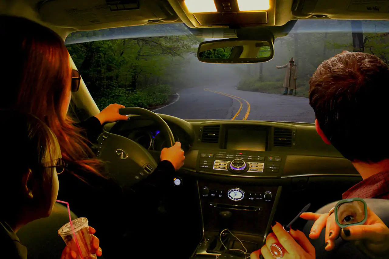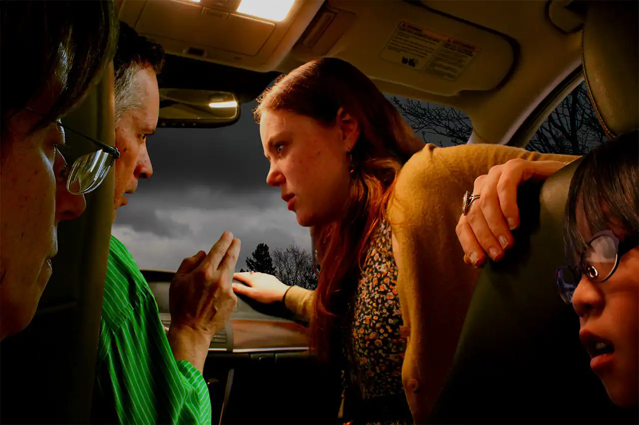 On this journey, they encounter many of what appear to be ordinary circumstances—loss of cell phone use; a hitchhiker; a deer in headlights; stray birds flying overhead and so forth—that allow their creeping sense of alienation to unfold.  Will the protagonists change direction, thereby solving the mystery at the core of this journey? Or as Lao Tzu suggests, will they find that being lost is what they are most comfortable with.