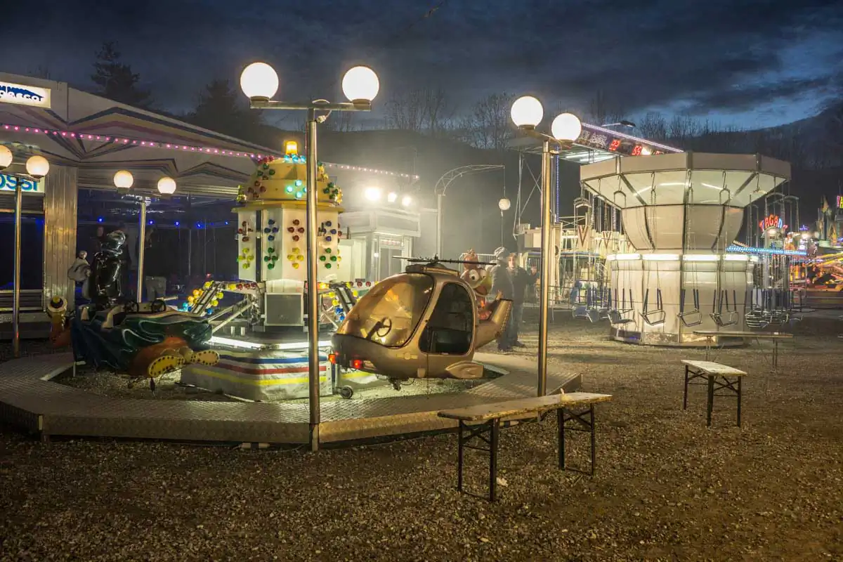 Maybe also because to me it is repeatedly a kind of opportunity to prolong my youth. Every adult used to be a kid once. Fairground rides take me back to these good old days. And all of a sudden, I’m 15 or 16 years old again.However, longing for carrousels and whatever they stand for is a most present thing. Movies, books and paintings, postcards and posters that are repeatedly re-published as nostalgic replications tell of its most special allure.