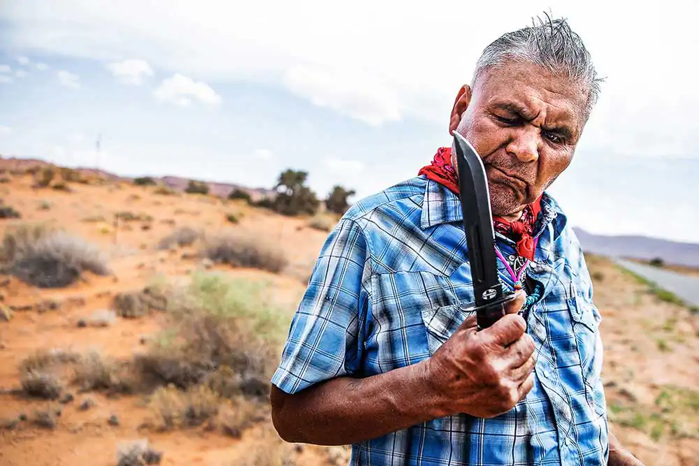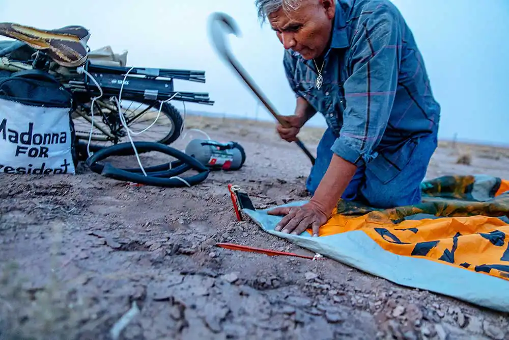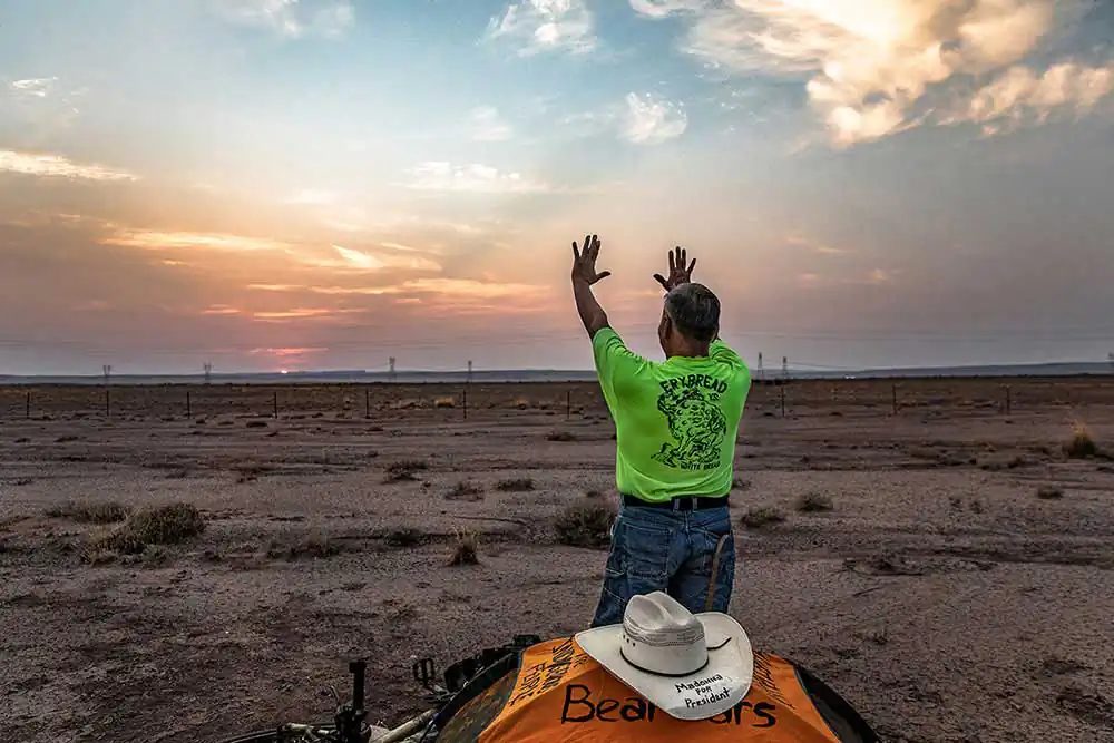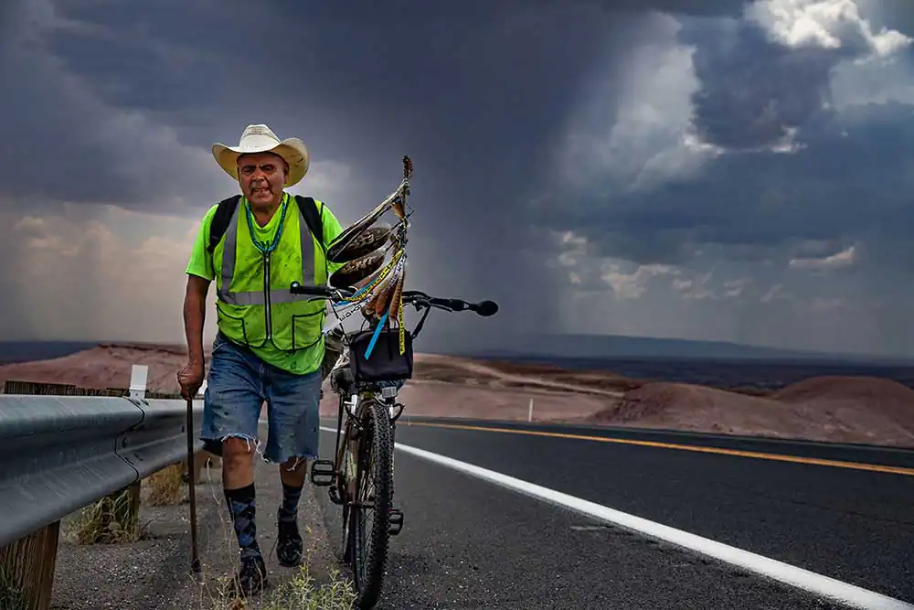 The idea, at the least, is improbable – especially in an era when trolling one’s political adversaries from the anonymity of a computer screen is easier than taking a physical stand for something you truly believe. The story of Joey runs deep: a convicted felon, former drug addict and the victim of a drunk driving collision that severely crippled his hip, Joey is an unlikely hero for the rest of us… a man who sees courage in people who stand up publicly to the injustices of a broken political system, however misconstrued his interpretation of Madonna’s 2017 speech in Washington happens to be. Armed only with a pup tent he painted, black shoe polish, extra Argyle socks and other essentials, like tape, Joey departed Flagstaff, along with his cane and a loose-leaf notebook for collecting signatures, on a quest that concluded 200 miles later at the place of his birth – in part, over the very land the U.S. government forced his people to march during the Long Walk to Fort Sumner in 1864. As his self-appointed documentarian, it was important for me to capture the essence of Joey’s undertaking… the emotion, physical sacrifice and single-minded purpose of elevating a pop culture icon to an elected role as the global spokesperson of moral conscience (times have certainly changed). Along the way he taught me the importance of having a larger, noble purpose in life… of speaking to people you don’t know concerning matters that they, too, may care deeply about. Which helped me to reach my own conclusion at the end of the journey: this is a compelling human-interest story that belies the perceived apathy of Native Americans, and Americans at large – and speaks to the capacity of the human spirit, even if it’s contained in the crippled body of a Navajo man stabbing at windmills.