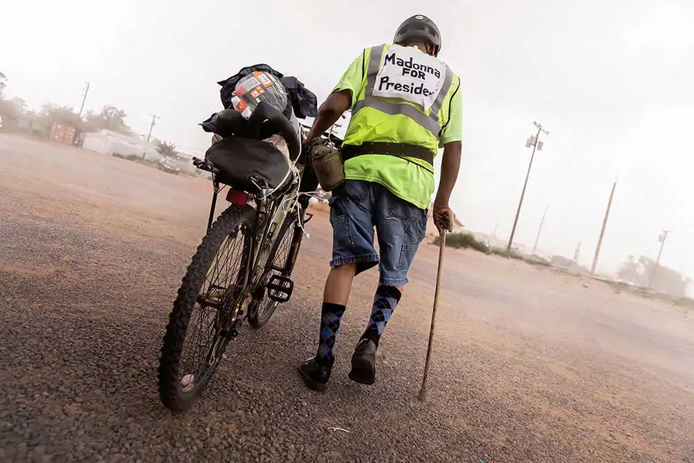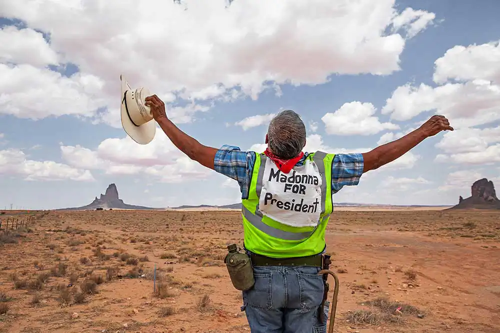 I recently photographed the Quixotic journey of Joey Allen, a Navajo Indian who embarked on a mission to ride his bicycle from Flagstaff, Arizona, to Monument Valley, Utah, campaigning for “Madonna for President.”