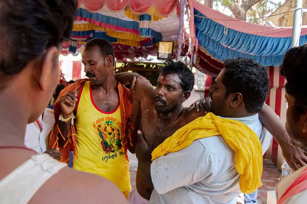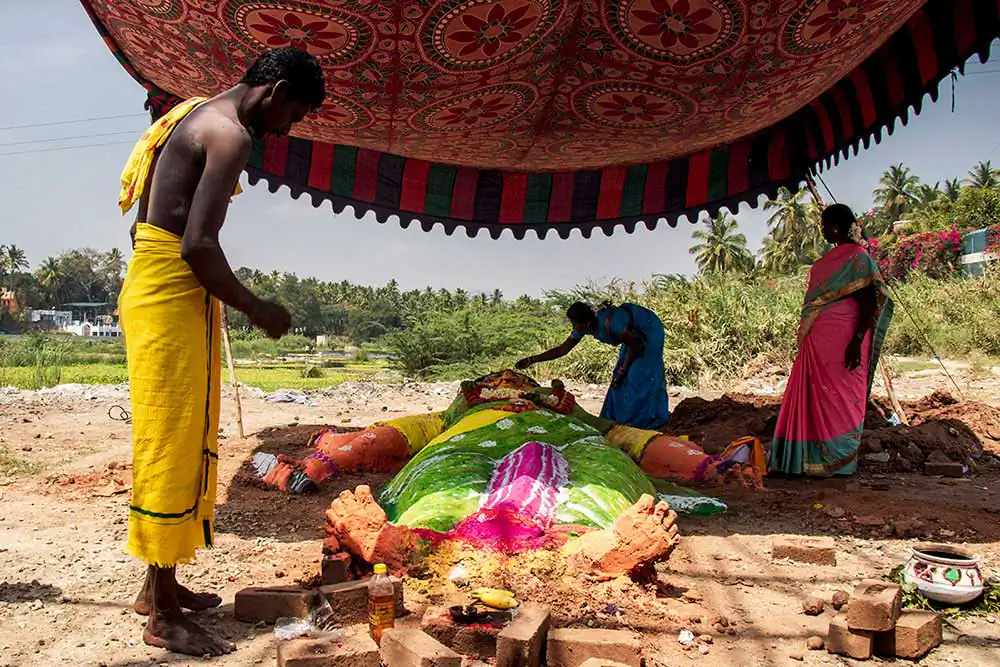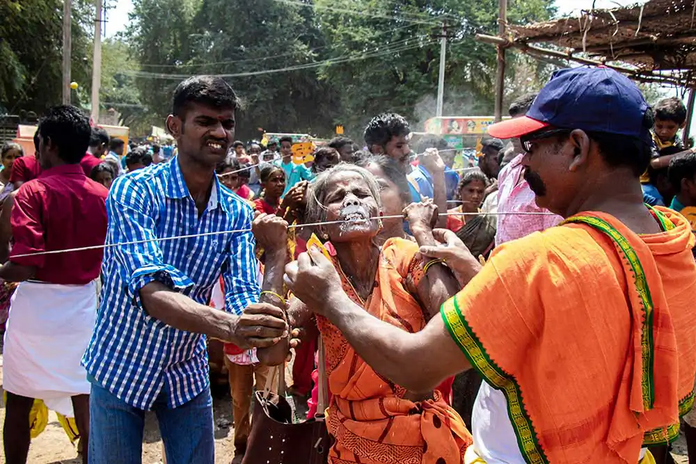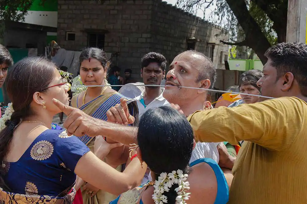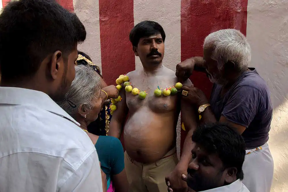 Sivaratri celebrates the convergence of Siva and shakti. The “Mayana soora Thiruvizha” is a festival dedicated to Angalamman [a fierce guardian deity worshipped widely in Southern India] and is celebrate the small village of kaveripattinam, the day after Mahasivarathri [the great night of Lord Shiva ].