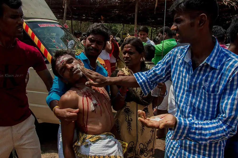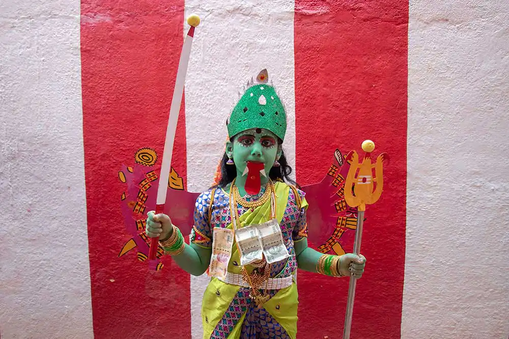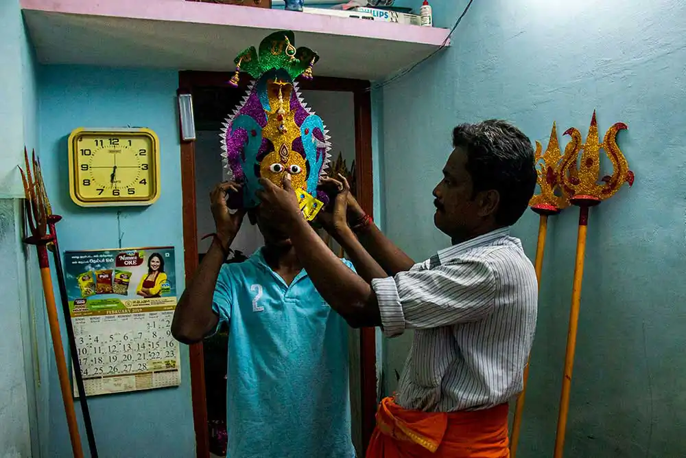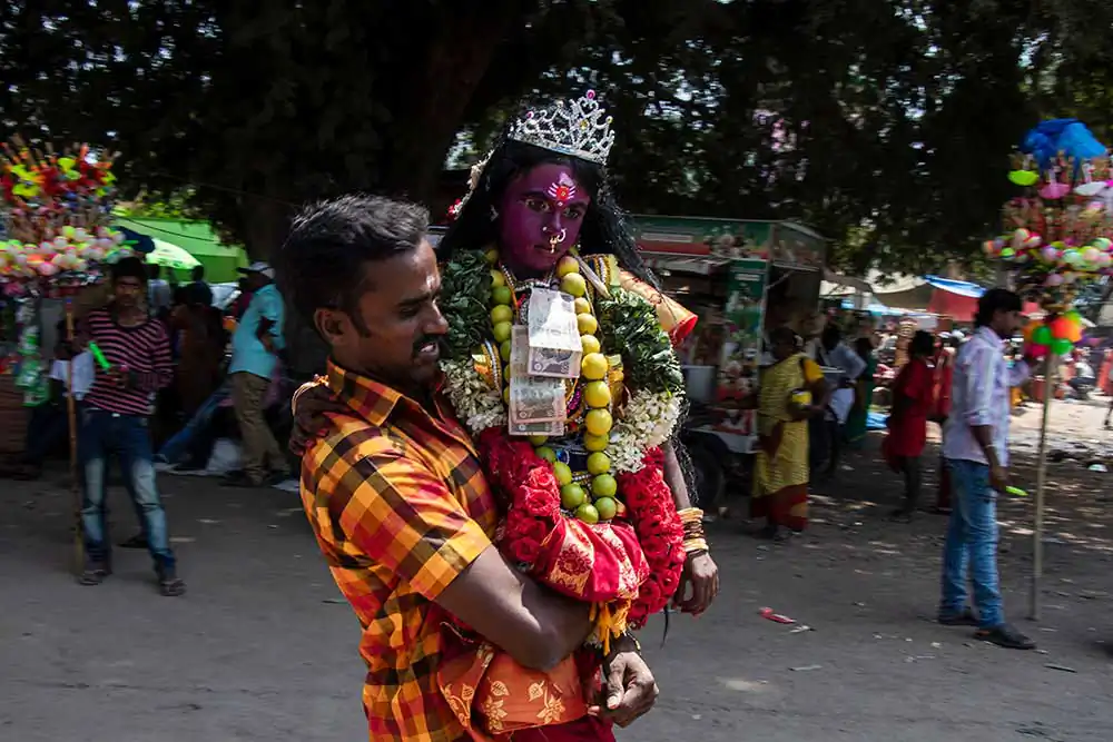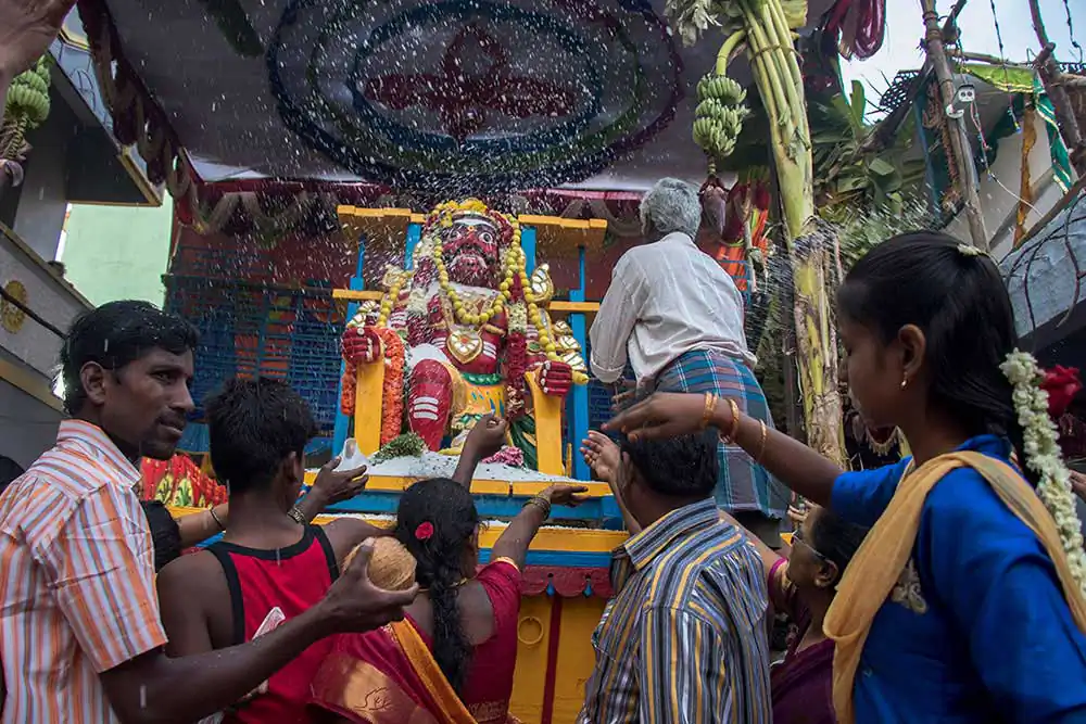 Sivaratri celebrates the convergence of Siva and shakti. The “Mayana soora Thiruvizha” is a festival dedicated to Angalamman [a fierce guardian deity worshipped widely in Southern India] and is celebrate the small village of kaveripattinam, the day after Mahasivarathri [the great night of Lord Shiva ].