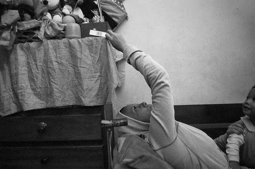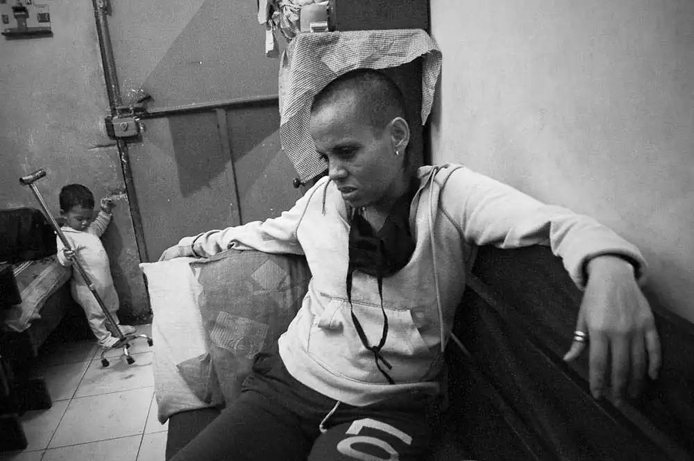 But beyond the statistics is the people and one of them is Maiffer, who has been living with cancer 6 of her 38 years. She lives with her 4 kids, 3 grandchildren, her mom, and her grandmother at the cota 905, one of the poorest ghettos in Caracas.When she was diagnosed, the disease was already in an advanced stage, spread through a large part of her body. Despite her delicate health, she still maintains a strong faith in God, thanking him for the strength to keep fighting and saying ”that’s what keeps me alive”. The one that has never left my side is Jehovah, He is the one that inspires me every morning, He is the most effective pain reliever that I have. I can take ten or twenty pills, and I have, the pain is too heavy, and they don’t have any effect. Instead, if you call Christ you can feel God’s hand touching you and making you sleep. That’s what keeps me going. If it wasn’t for Him, I wouldn’t be here anymore, ” claims the woman, who despite her terrible situation has found the way to shine a positive light on it.