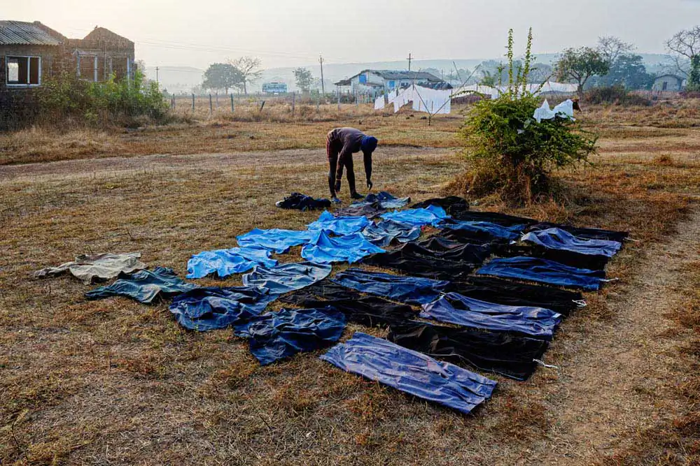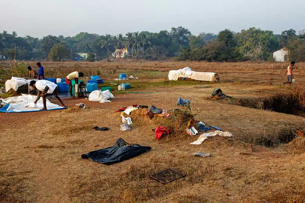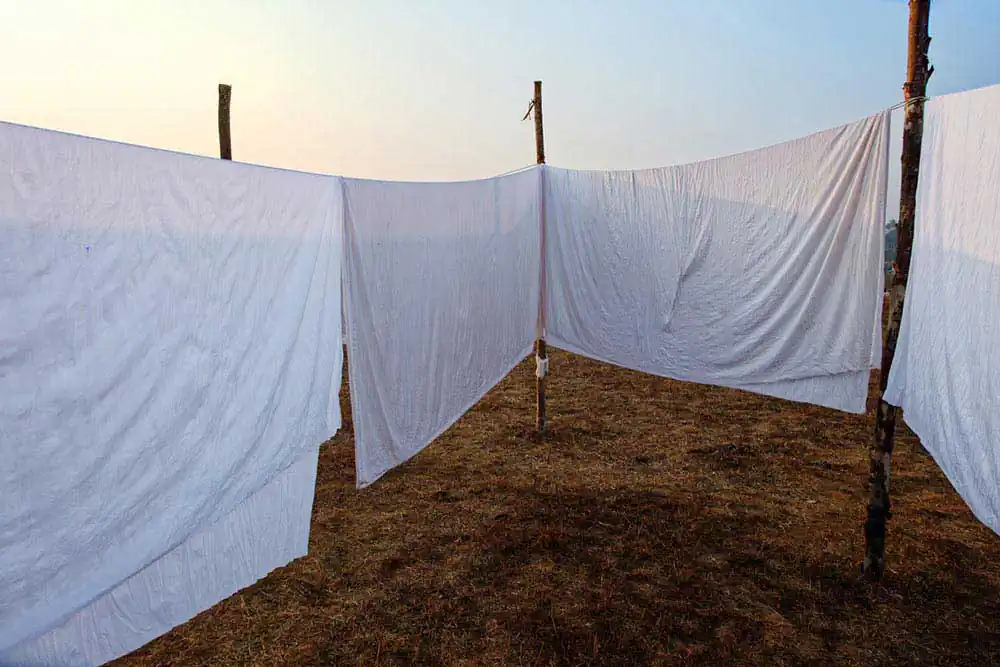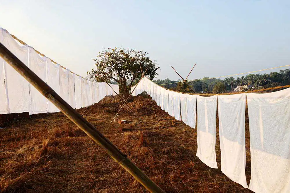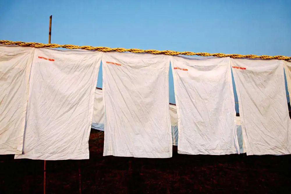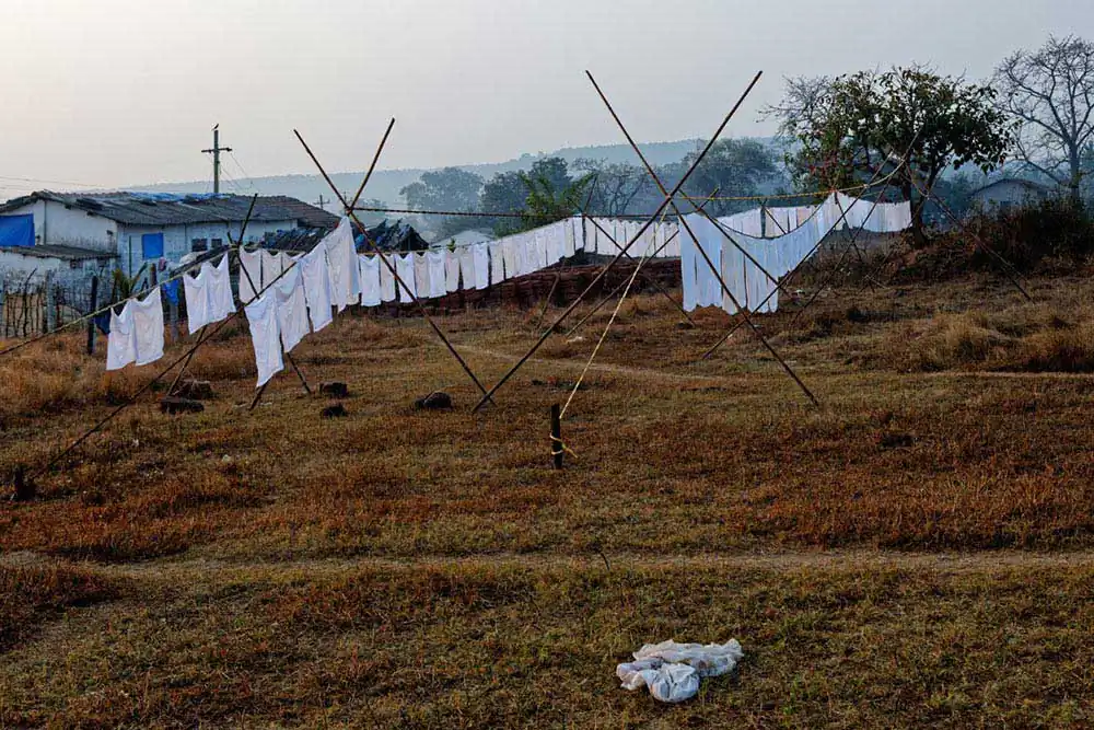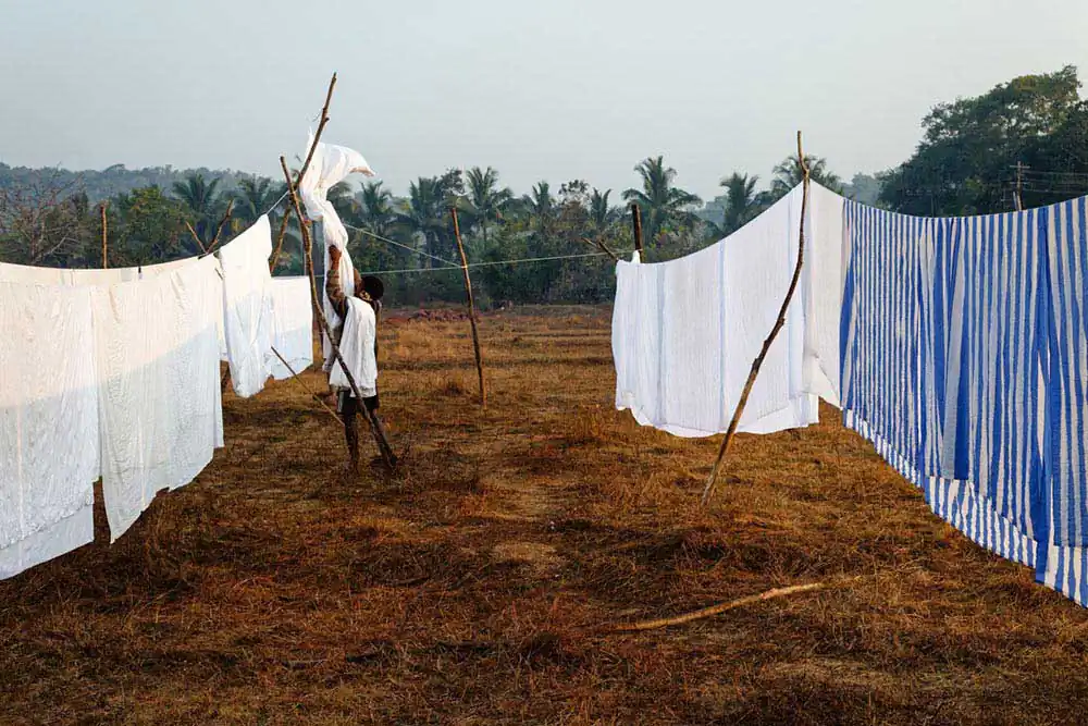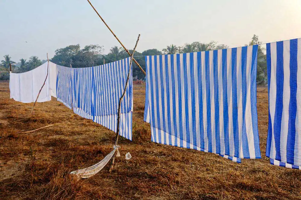 At daybreak, the light is splendid on the plain of Mapusa road. The laundry seems to float in the void.