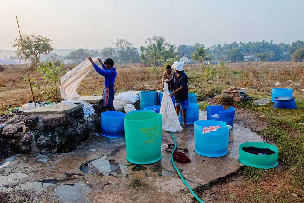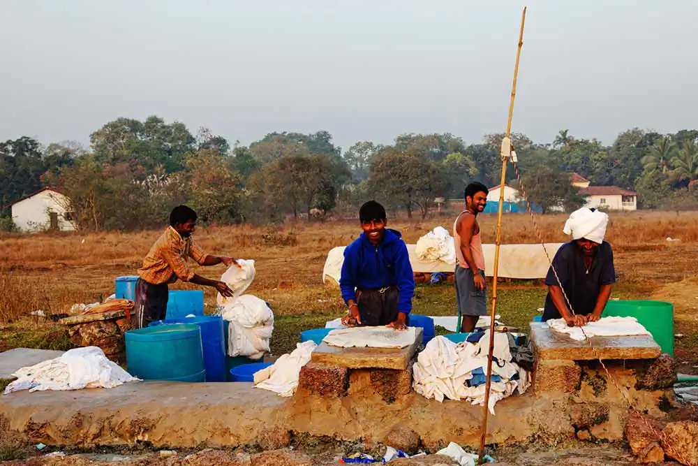 The laundry team is already hard at work. They are low caste people, none of them speak English, but after exchanging tea and cigarettes contact is established and I spend the morning with them.