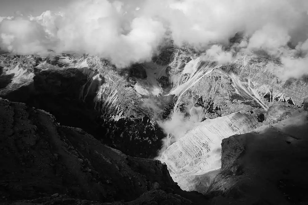 Mountains is a photographic journey made in the Alps, with a brief excursion on the northern Apennines. In particular, from West to East: the Bernese Alps, the Orobie in Lombardy, and the Dolomites with the Tofana peak and Lake Braies in the Veneto region.