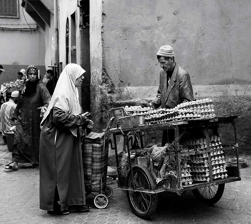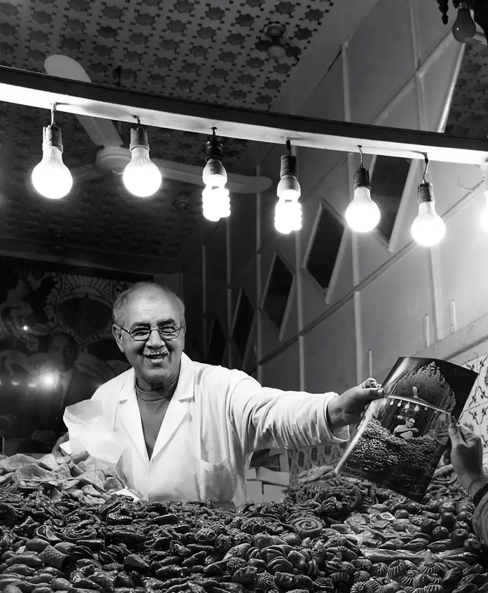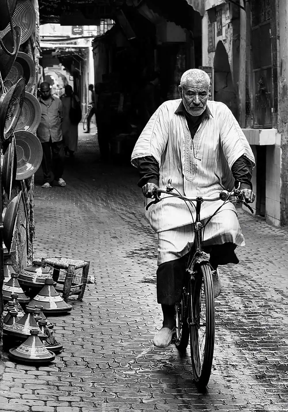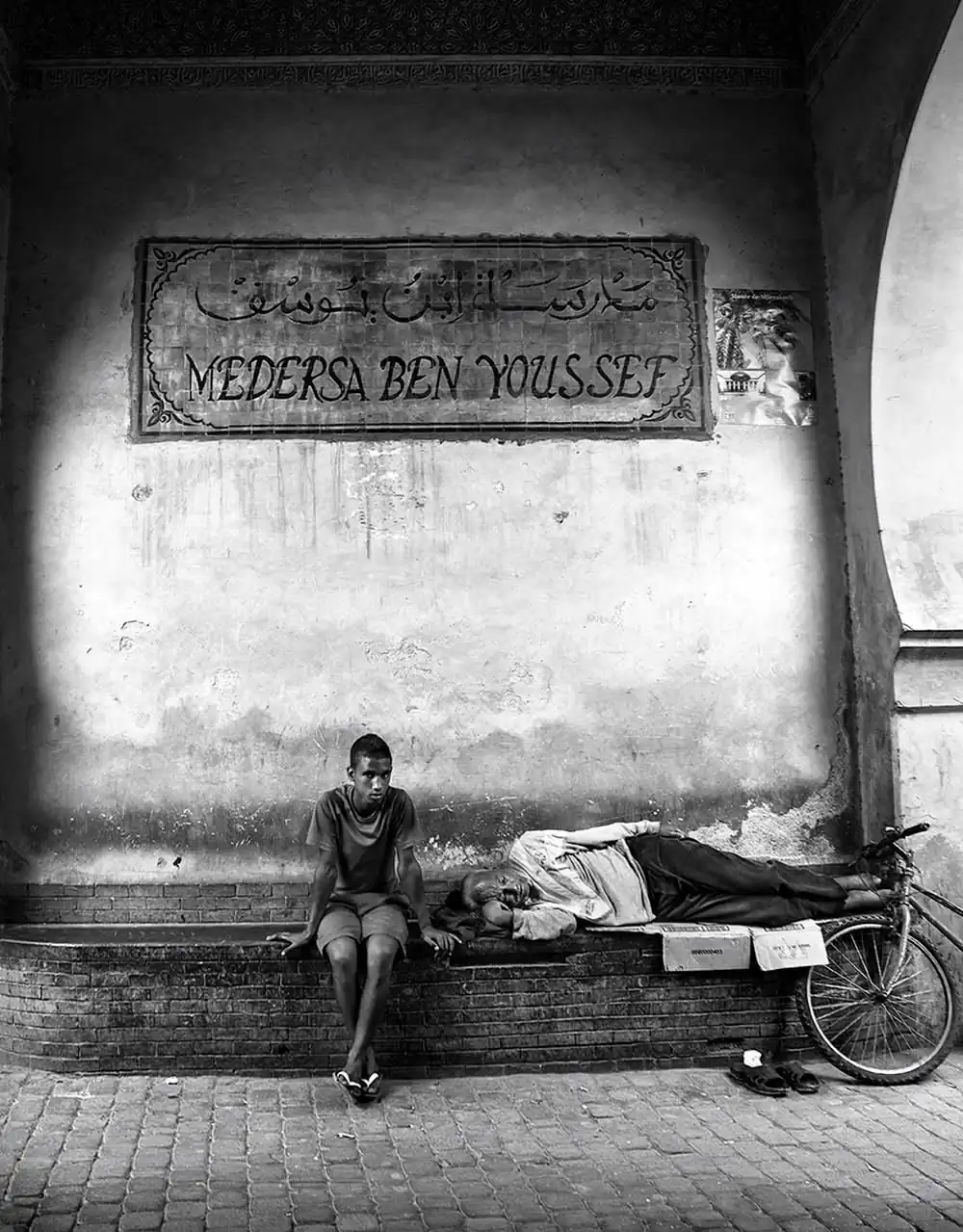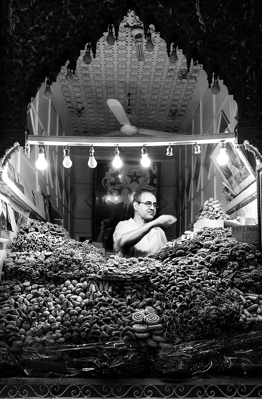 So I thought I should change my technique and use some tricks if I wanted to get some portraits. I don’t like to take stolen photos, at least if I can, and I only do it when I don’t want to alter the scene or miss the right moment. But in this case, I had no other options. Therefore, I went back to the riad and changed my clothes for a more discreet one, I made certain settings to my camera assuming that I would probably not be able to obtain high-quality photos, and thought about how taking advantage of every single chance. As I have always said to myself, “a bad photo is better than no photo.” I returned to the street determined to use everything I knew about street photography. Fortunately, this time I got enough photographs of people without them noticing that I was photographing them. The day before returning home I met a young salesman and asked him why they did not want to be photographed. He replied that they were fed up with tourists who only treated them like objects, without asking permission to take photos and giving nothing in return. Already back home I did not stop thinking about what he said. This was why I made a decision: I needed to go back to Marrakech. I organized the second of the four trips I have made to Morocco. But this time I printed several copies of the photographs I took on my first trip and took them with me to Marrakech. I looked for the people I photographed, it was very hard, but I found almost everyone and gave them their printed photos. As an example, I remember the man selling candy in the souk, who kept watching me angry while I tried to take a picture of him. In the end, I got his picture by putting my wife in front pretending to take the picture of her, but really focusing my camera on him.
