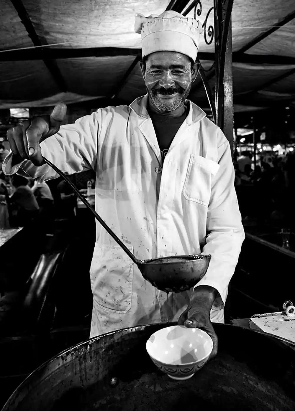 When I returned and went to his tiny shop, he looked at me seriously because he reminded of me. I just told him: “I have a present for you,” and I gave him his picture. At that moment everything changed, he was very surprised, smiled and hugged me. Whenever I have returned to Marrakech I usually take with me some printed photos or show my photos published on the Internet to the people I want to photograph. I ask permission from them to post their photos and I thank them for their kindness. The result can be seen, above all, in the last ten photographs of this project that I have titled: Marrakech, the challenge. Wherever you are and whatever happens, remember that making a portrait is much more than a simply clicking
