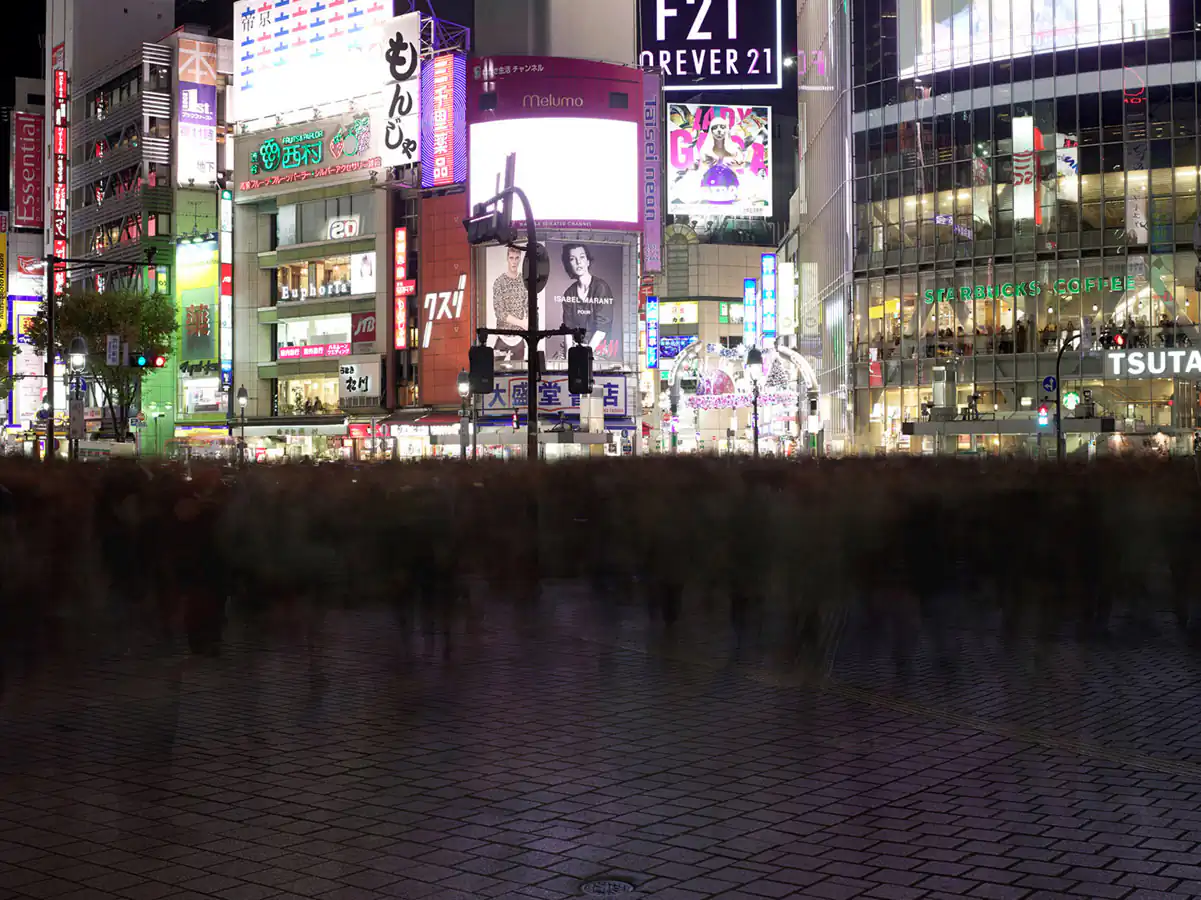 His photographs reflect the urban and commercial architecture that is built around us; arrogant landscape that considers itself the heart of the city and pretends to replace all our desires. Laurent Baillet does not interpret this evolution; he experiences it with fascination, but not without ambivalence.His depictions question the real value of this age of mass culture and its effects on us, the consumers. By catching these streets, their symbols frozen in a temporal instant, the young photographer is taking the measure of the place left to the individual by the system, which, in its excessive standardization, controls not only people’s outer space but also their intimate realm of imagination and fantasy. The individual appears to be erased, fleeting, already devoid of substance, quickly disappearing. But Laurent Baillet has traveled and lived on almost every continent and this finding is not necessarily given as an end, but rather as a step. A society that has not yet «digested» consumerism cannot yet be freed from mass culture. This «ideal» portrayed here on the billboards and advertisements covering building facades leaves one question unanswered: is it the luxury industry or the individual that is anachronistic? Which presence here is truly legitimate?.Human society, flowing despite any one person controlling its direction, is it random movement or does it embody the irresistible swarm of our collective conscience