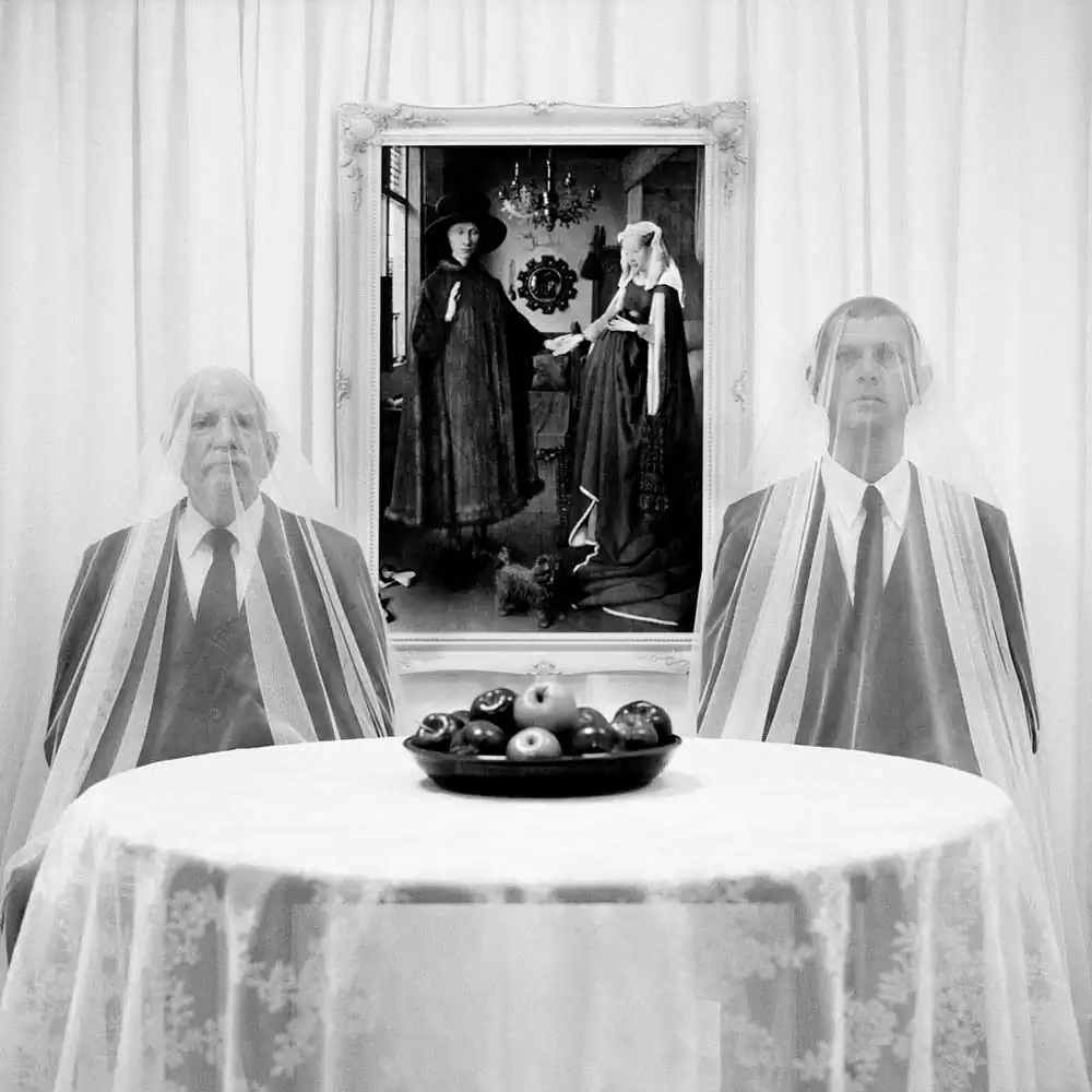 ‘Till death us do part’ is a series of absurd permutations of the wedding portrait. These performative responses to ideas of marriage and domesticity evoke a sense of the uncanny – the ‘homely and un-homely’.