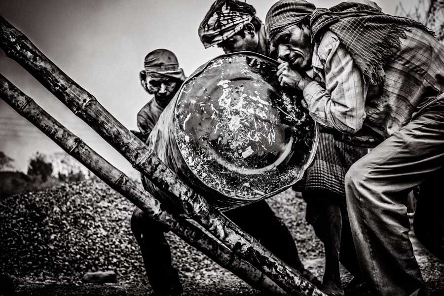 Sukdeo Murmu, a 60 years old worker and the eldest among the workers, smiles innocently “Pet ka sawaal hai ji! Hum log kya kare?” he says. ‘It’s about the stomach. What can we do?’