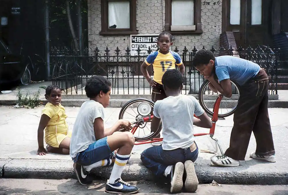 Meryl’s internationally acclaimed books, A Tale of Two Cities Disco Era Bushwick (2014) and Purgatory & Paradise SASSY ‘70s Suburbia & The City (2015) were just tips of the iceberg. She kept digging into her archive, finding hidden treasures. New York PARADISE LOST Bushwick Era Disco takes a unique turn, from clandestine clubs into the classroom – students and staff creating a safer space to learn despite societal ills of poverty and prejudice. Her street photos radiate the joys of daily life amidst hardship. The nightlife images expose the edgiest, darkest activities she has ever shown. Flash forward four decades: Bushwick is a hub of new music, art, fashion, literature, nightlife, and creative thinking. Many bemoan the gentrification of neighborhoods like Bushwick. There are nostalgia and sorrow for what’s lost in the process of change.