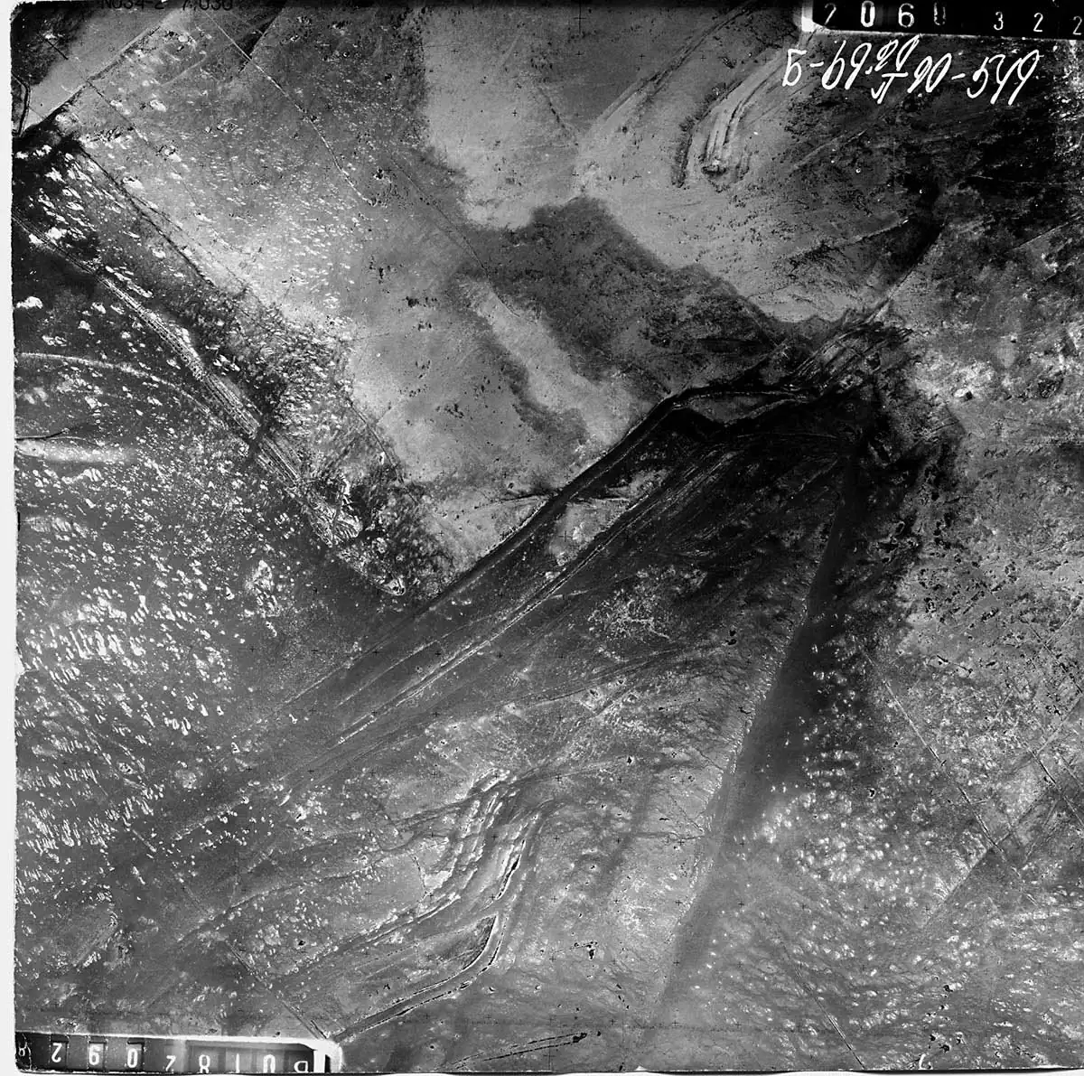 In 1987, the Aral Sea was divided into the Great and Small Seas – the Southern and Northern Aral, forming a narrow channel between them.In an effort to save the water, at least in the Small Sea, in 1992, on the isthmus between the North and South Aral, a dam was built. It was built by local forces and at their own cost and expense from reels of cane, stones, sand and clay using technologies of the Stone Age. The sand dam was washed away. Three times a dam between the Small and Great Seas was erected by “rule of thumb”, and three times was washed away.In 1999 a mighty stream washed the dam between the Great and Small Seas away ones again. Water washed away not only the dam but also the lower part of the Aral signs. During the Kokaral dam construction in the Small Sea heavy trucks erased the remaining part of the signs. The secret signs have gone before they had a chance of being widely interested in and studied. Information about the Aral signs is recorded on the aerial photos which Boris Smerdov stores carefully.