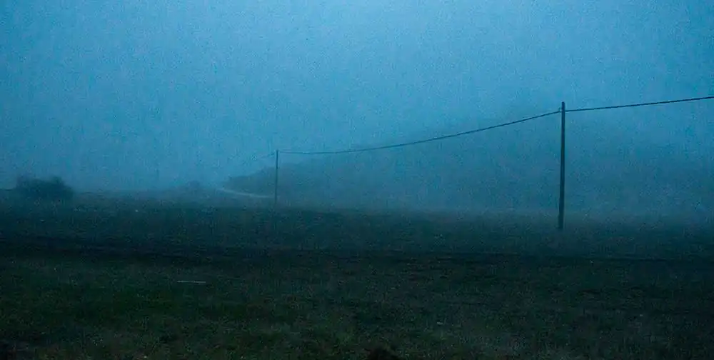 In met-esthisis, Sarah’s parents, (protagonists of this nightmarish story) are not seen. Although they are the means of the subject, is not who they are that interests me nor how they react, but I tend only to the implication of their feelings. The fog and the night that make it difficult to find the young girl, along with the large landscapes in which she may have been lost, give to the story this extra scary mood. The frame and format are intentionally cinematic and common to all images except one, which is there to remind us, that it is not some snapshots from a movie. Neither the title of each photo nor the name of the series, mention Sarah’s name, because the dots could be completed by any other name … such as their parents. The grainy film (“argentique”) look of the pictures, although all of them shot with a digital sensor, is there to give us a nostalgic period style, feeling. The series is printed at Hahnemuhle German Etching paper. With this paper each photo gives the impression that it is more a painting than a photo. At the exposition the spectator is listening also to an audio that allows him to get involved with the images more intensively.