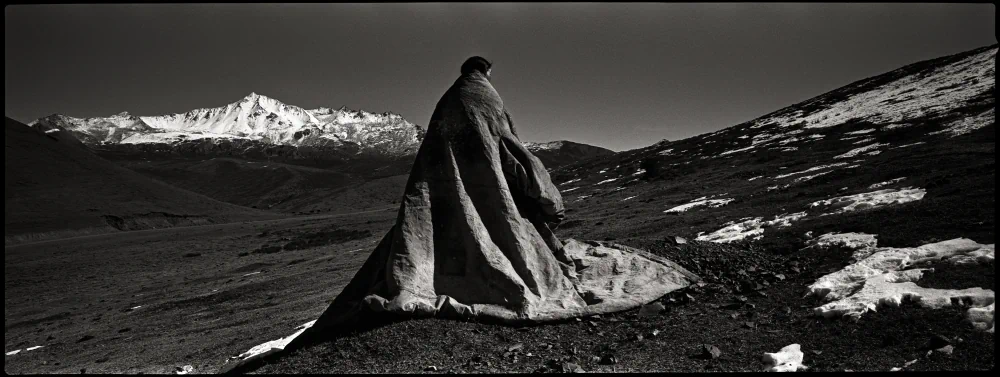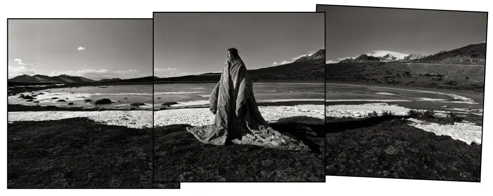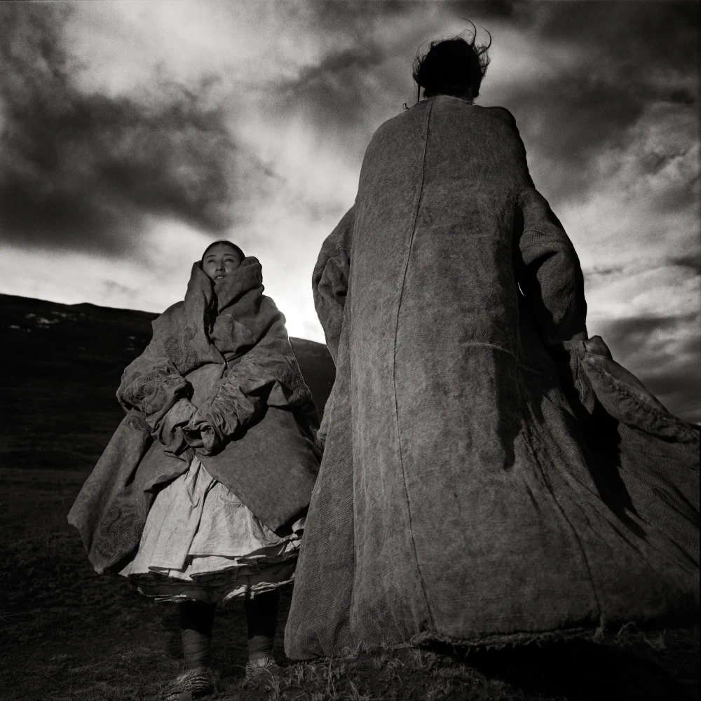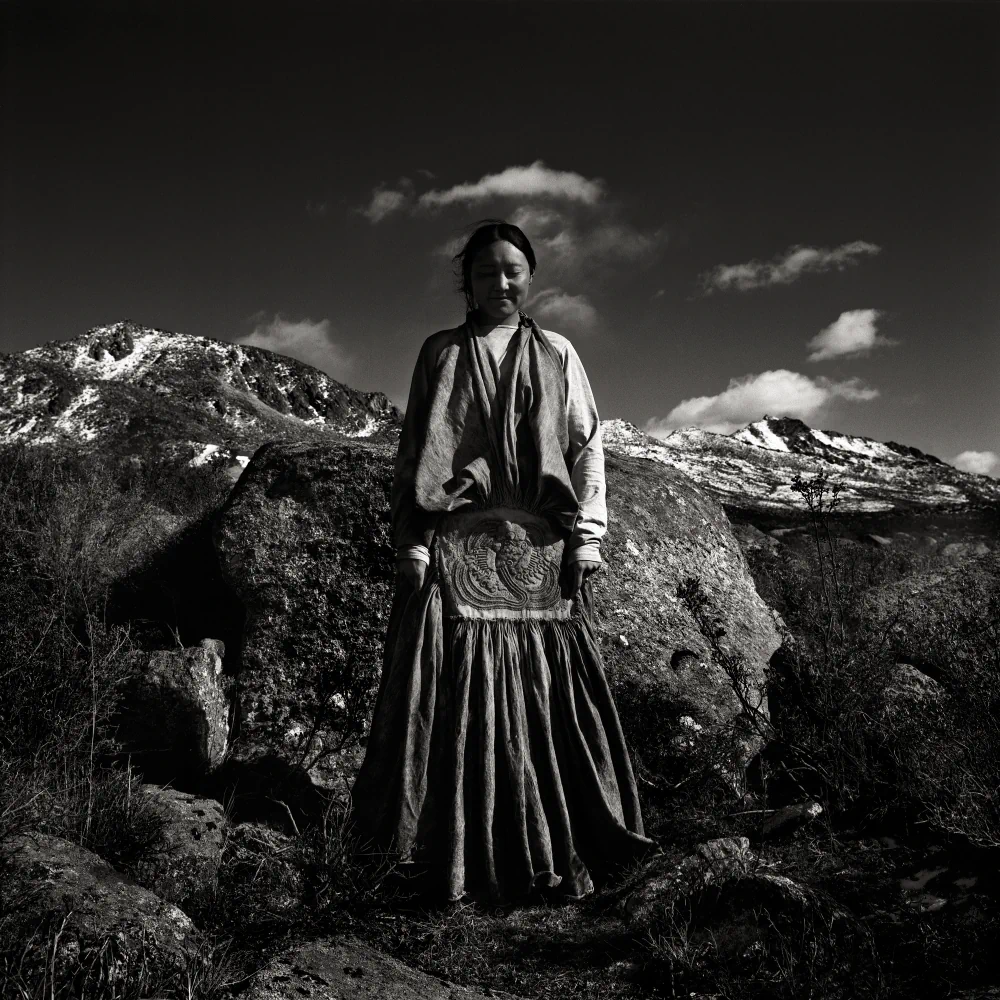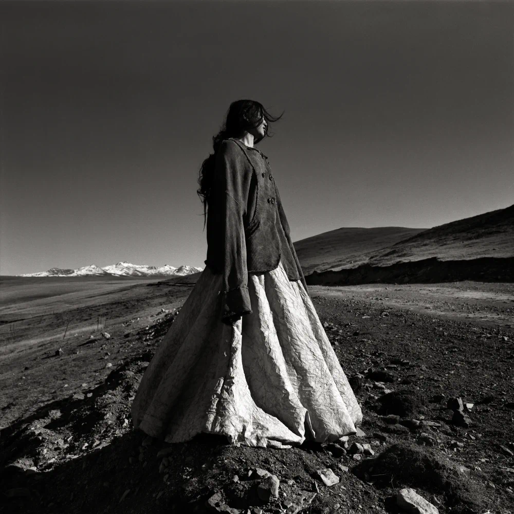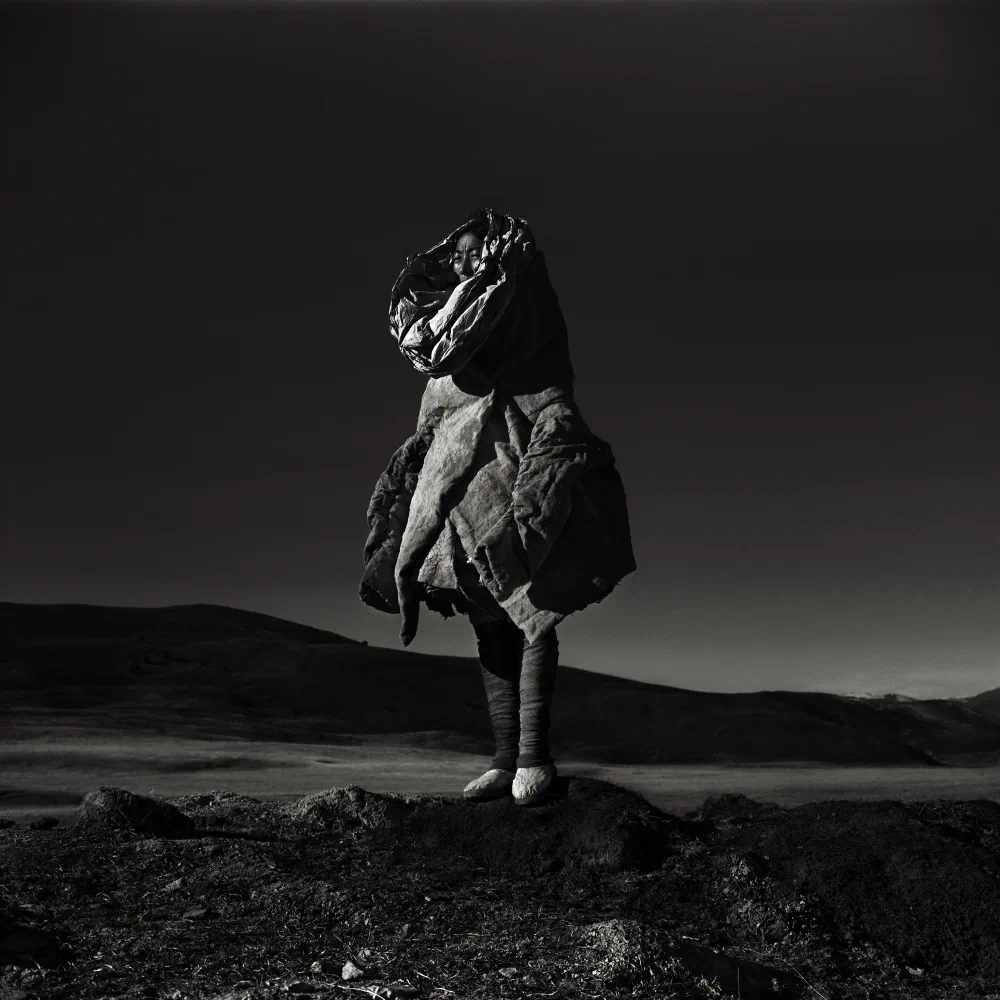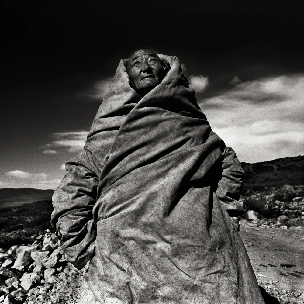 The series was photographed on the Tagong Grassland in the Garzê Tibetan Autonomous Prefecture of Sichuan Province, China. “Tagong,” a Tibetan word meaning “a place favored by the Bodhisattva,” lies on a plateau at an altitude of 3,730 meters, where the Sichuan–Tibet Highway cuts through a vast, elemental landscape. All the people depicted in this work are local herders and their children from scattered Tibetan villages. The images were captured exclusively on black-and-white negative film and hand-developed in a humid hotel bathroom in Guangzhou during the journey. The grainy silver-halide crystals, high-contrast tonality, and inherent imperfections of the process became an essential visual language for the series, an organic surface through which time, fragility, and presence can be felt.