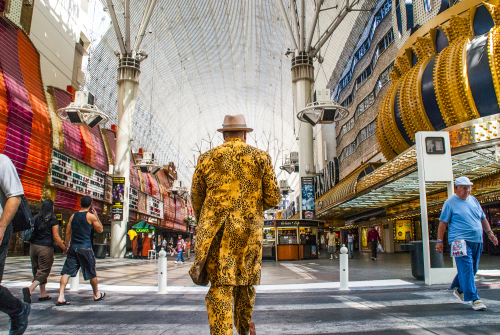“I enjoy going to Vegas as an adult, but not for the gambling (I don’t gamble); I go for the people-watching. Everywhere, I see saturated colors and flashing lights, luring signs assuring nonstop fun, percussive sounds of chaos demanding attention, the poetry of losing, the art of walking away, and the great irony that many do not seem to be feeling the joy they were promised.”
