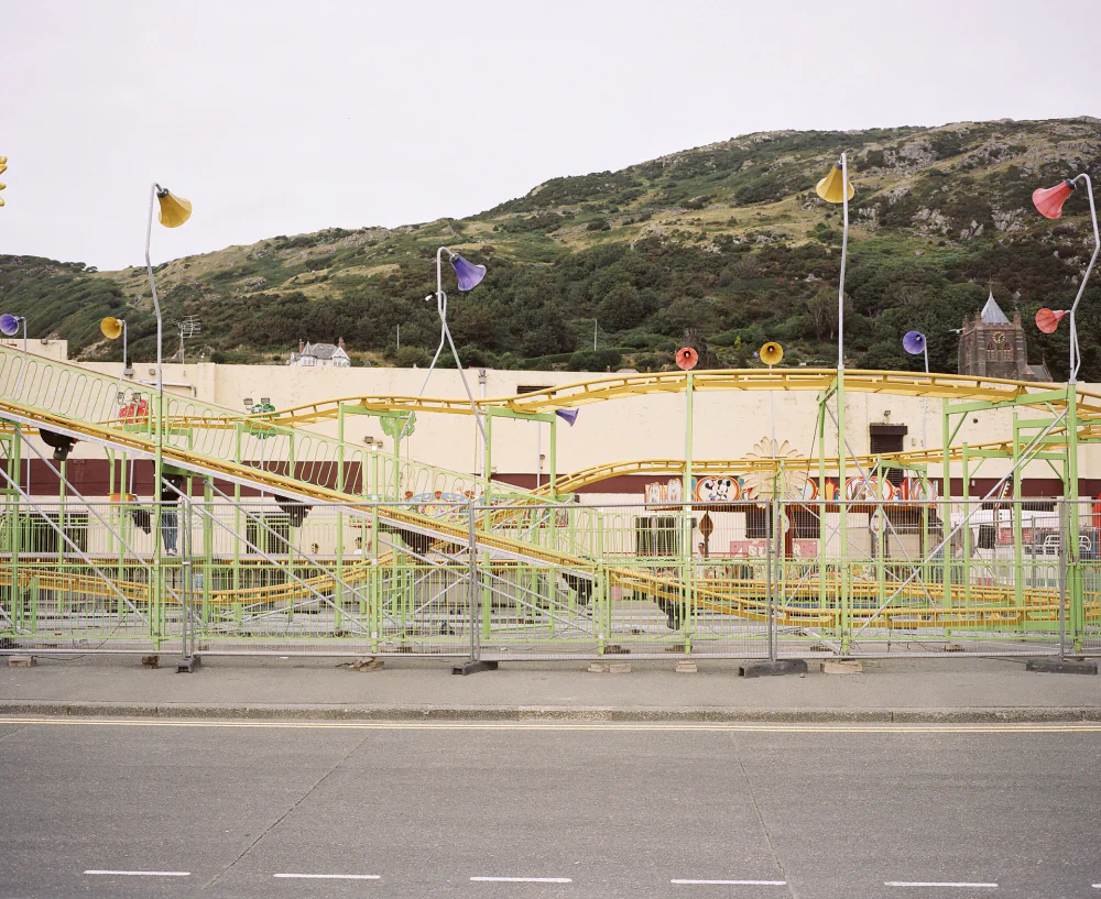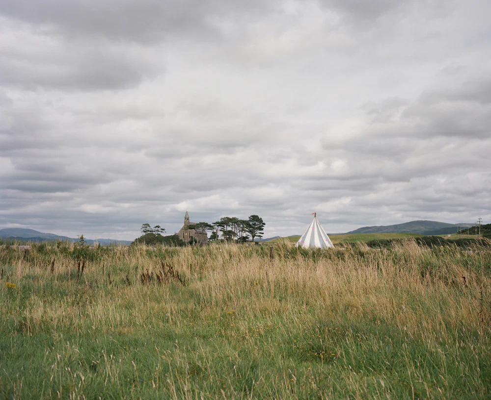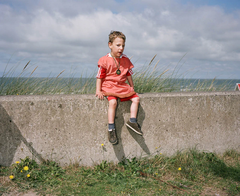 The images were mostly taken along the stretch of coastline between Ynyslas, a small seaside village, and Aberystwyth, a university town at the end of the train line. During a summer residency at Aberystwyth Arts Centre, Sank made the images by walking or driving through the area and stopping whenever she saw something that struck her—a boy, for example, sitting on the sea wall, wearing Roman fancy dress over his football kit. “I’m a bit like a hunter when I’m working,” she says. “I wait for things to come to me.”