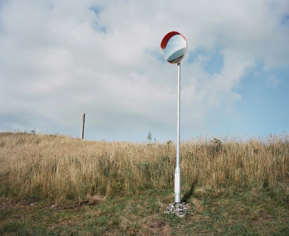 It is this tension that allows many of the photographs to imply a narrative: two young children, brother and sister, standing in an idyllic village. The girl is pigeon-toed, and there is a speck of blood on her knee, echoed by the bloom of red in the nearby flowerbed. The image moves into darker, almost fable-like territory. Two lost children wander into an idyllic village; without knowing why, they sense a threat in the well-kept gardens.