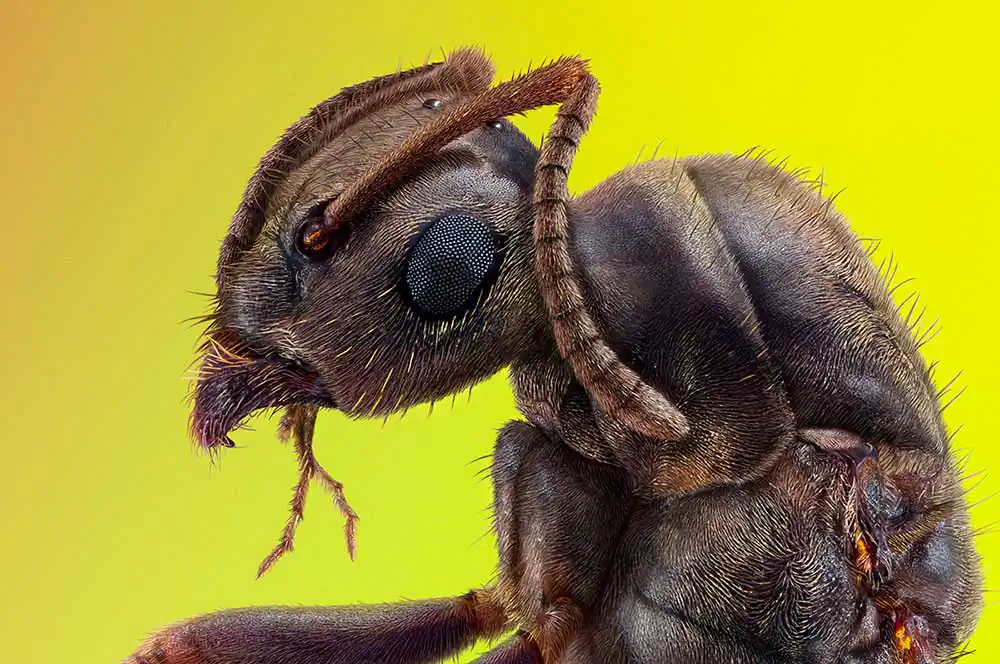 Each image was made by the focus stacking of a few tens or hundreds of shots. The purpose of this project was to show common insects from an unexpected perspective. That is why all insects were from my native South Ural, the place no one would expect to find exotic, bright species. A photo of a dead fly, found on the kitchen floor in 2017, triggered the project. Now the project serves the benefits of the humanity by disseminating visual knowledge of small creatures in Open Access. My photos illustrate articles on Wikipedia. Any person can access the photos for free anytime to peruse marvels of insects’ morphology and habitats. I am happy to contribute to the global knowledge and to open people’s minds with my provocative photographic works. I will continue to donate my photos to the Wikipedia project for educational, scientific and research purposes. Only 0.022% of 64 million photos and images from the Wikipedia library are featured as the best works. I am proud that my photo “Portrait of an ant” is one of the featured works.