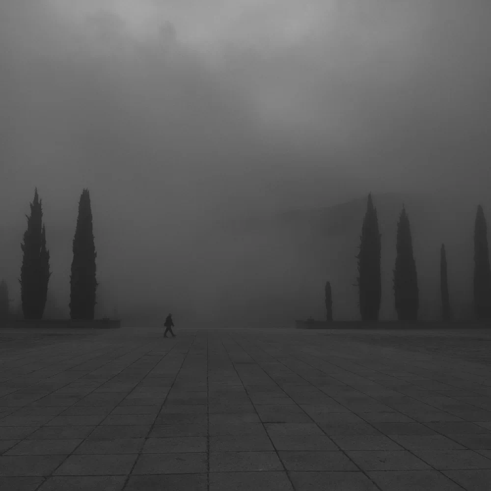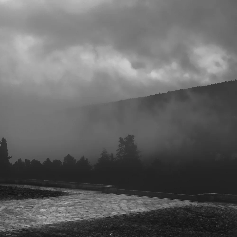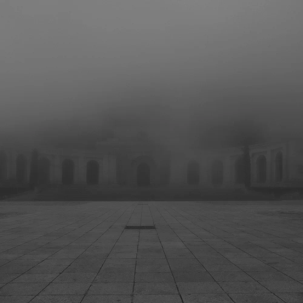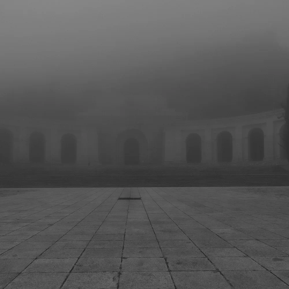 This series of thirteen photographs engages with the Valley of Cuelgamuros not as a static historical site, but as an unstable field of memory, power, and unresolved trauma. Shrouded in mist, stripped of spectacle, and rendered with sober visual restraint, the images appear at first glance almost indifferent—monumental architecture reduced to grey mass, form hovering between presence and disappearance.