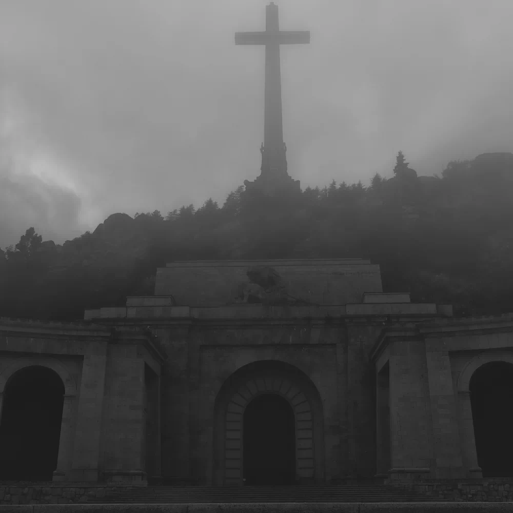 The Valley of Cuelgamuros, long associated with Francisco Franco and Spanish fascism, is a site whose ideological weight is impossible to ignore. Built through forced labor by political prisoners and conceived as a triumphalist symbol of the regime, it embodies a violent attempt to monumentalize victory and impose a singular historical narrative. To photograph such a place is inevitably to enter moral and political terrain. Rather than confronting the monument head-on through dramatic angles or overt symbolism, this series opts for withdrawal. The camera does not accuse; it waits.