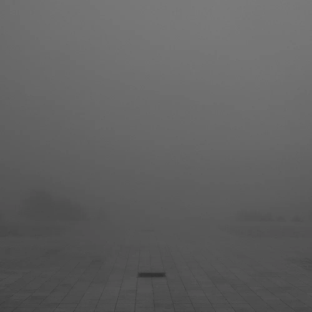 Shrouded in mist, stripped of spectacle, and rendered with sober visual restraint, the images appear at first glance almost indifferent—monumental architecture reduced to grey mass, form hovering between presence and disappearance.