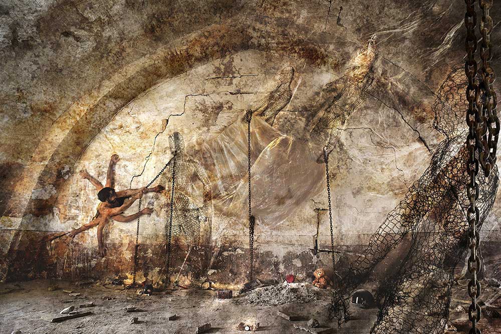 During his art study, Runeda developed a taste for video edition. His first professional experience was therefore logically as a video editor. This experience has a strong influence in his photographic work ; built as a video fading effect, his work, set as a complex superposition of images and subtle transparency, exposes us from the inside out, and illustrates the complexity of layers composing our identity. Throughout the years, Runeda developed a deep poetic visual tale through elaborated installations mixing multiple media and technics; staging created with self-made sculptures, paintings, and textures resulting in a complex visual experience. Runeda likes to make the invisible visible ; for him the processing is a way to read the raw material, there is no absolute truth, only feelings. He therefore creates distance between the initial photography and its original context, and thus reinforces its narrative strength towards a more baroque experience, pushing the viewer to wonder, question himself and create his own story. [Official Website]