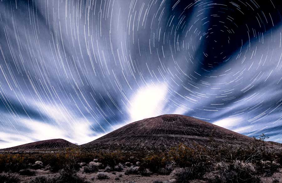 The desert can be a lonely yet tranquil place. Some of these captures are from well off the beaten path. Over the course of fifteen nights I would often drive off the pavement, down a dirt road – some not so passable – and park the car just before sunset. Then walk up to three miles into the desert, usually with a mission; cactus or rock formations or dunes or sometimes seeking inspiration in the stillness. I rediscovered the light show in the blanket of the Milky Way – shooting stars and countless satellites accenting all the familiar constellations. As my sole light source, the moon trekked across the vastness of the night sky while a soundtrack of fluttering bats and howling coyotes played masterfully in the diverse landscape. Some mornings as the cold dipped below freezing I felt the Mojave wrap me in its arms and my urban life fade into the background. The crisp air filling my lungs with fresh oxygen, Los Angeles’ traffic and stress literally and figuratively miles away.