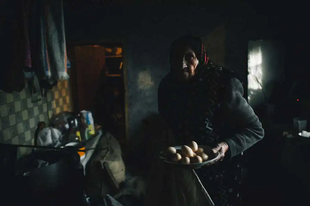 It smells like a bonfire, and the crows fly low, almost flat. The cold and the snow cover everything in the village. You can see fresh footprints in the snow of wolves that at night have approached in search of something to eat. These animals mostly come from the exclusion zone where they live at their widest, without worrying about human presence. These wolves are occupying the space that the man one day had to leave suddenly.