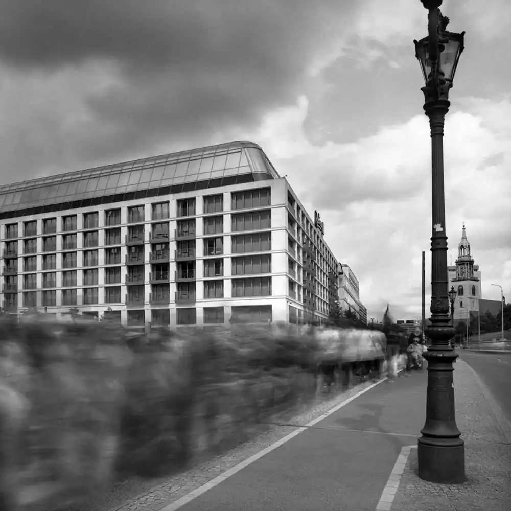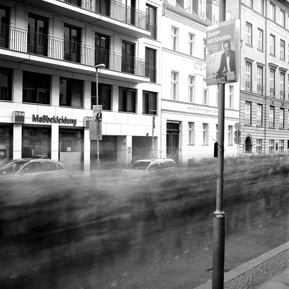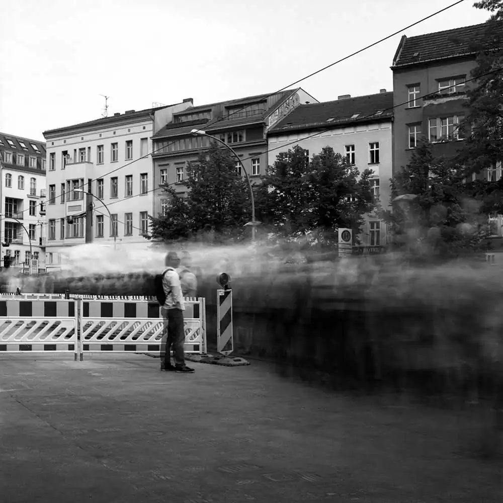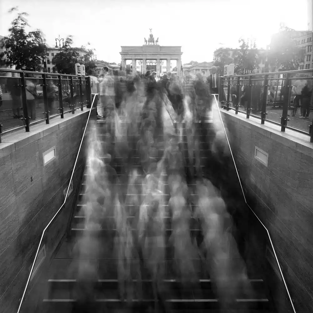 To create this effect, the artist is using one very special tool the camera offers: the exposure time. He changes its lengths to show how changing the duration of a moment can change its meaning. For Frank Machalowski the place of a city and its anonymity is what the series is all about. He is using time only as a tool to express a feeling, or whether he also wants to represent the duration of a moment, he said that he is“not concerned about representing a certain epoch, but to give a different insight of reality by using different exposure times”, and that in those regards, one could say that he is trying to represent time.
