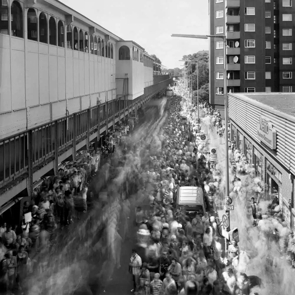 But the question of technique was quickly answered. More complicated is the management of the places and events. He start a photowalk with a look at the daily newspaper or relevant websites, to search for events, wich will attract many spectators. If he don’t know the place, he visit the location of the event some days or weeks before it starts. Then he takes some pictures in order to verify that it is worth for the series. Therefore he is looking for unusual architecture or special sights and landmarks and places wherever people come together and move.