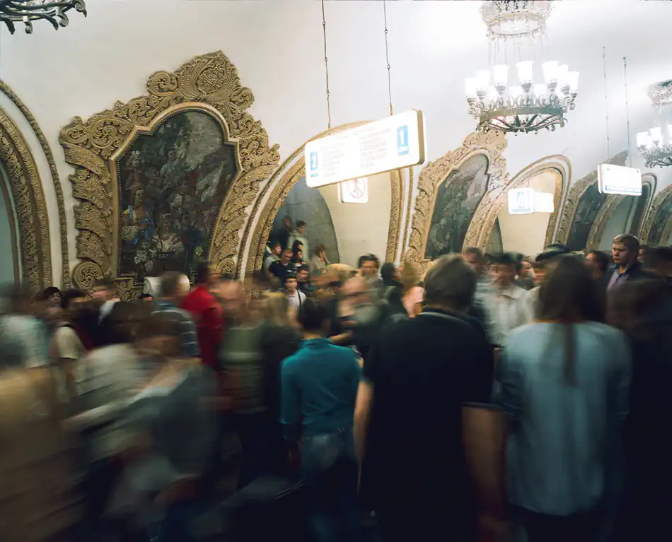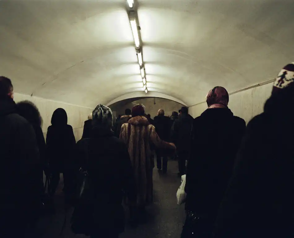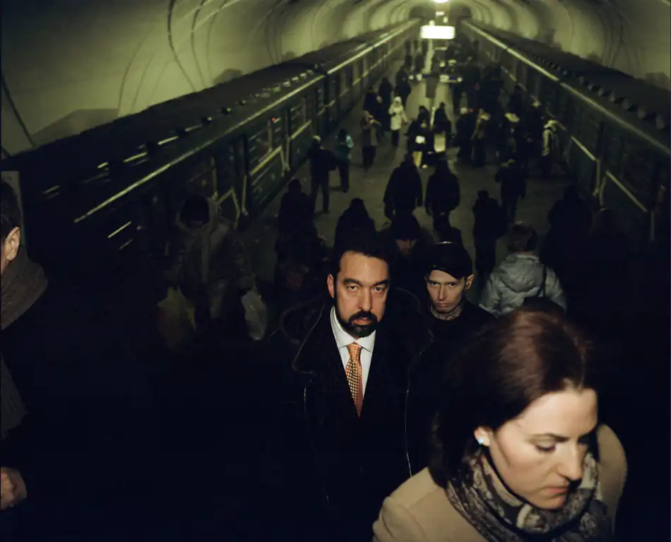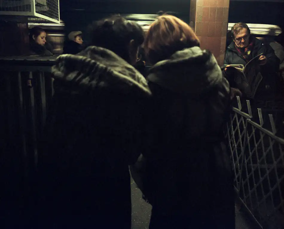 Israeli photographer Tomer Ifrah (b. 1981) photographed scenes from the Moscow metro, a vast and bustling transportation network which slices through the echelons of society, carrying an average of 6.5 million passengers daily.