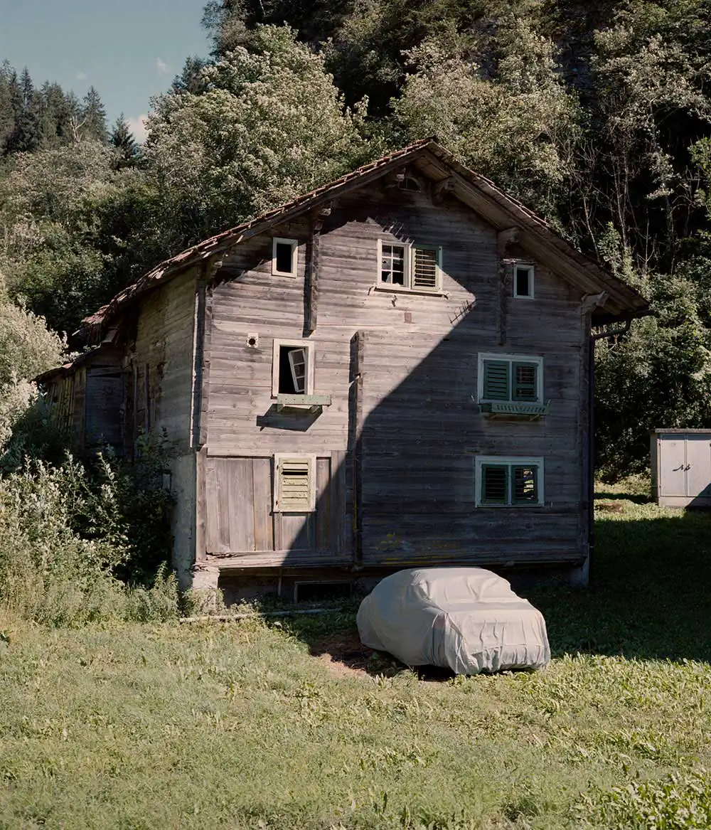 A valley with one entrance and no exit, with one road and no tunnel to the next area. This creates calm, a pale island in a saturated country like Switzerland. Things are left standing, time can pass, clocks run behind. Nobody cares. The light of the sun is strong and proudly shows its traces. It peels colour, bleaches nature and man-made things in it. Mountains are serious and often scary. They talk about life and death, about permanence and transience. They don’t easily reveal history and secrets. The series shows the previously described, different picture of the mountains. The opposite of the romantic picture that everyone knows. Apart from tourism and pure infrastructure, places in the valley have been sought that are simply allowed to be. Without claims to meaning and purpose for the masses. The pure undemanding itself – at first glance. Because they need great attention to the apparently invisible. Things that seem trivial to us at first and only reveal something deeper, if we look closely and intensively. These objects and landscapes make us reflect on the transient nature of things and lets us appreciate the beauty of decay again. [Official Website]