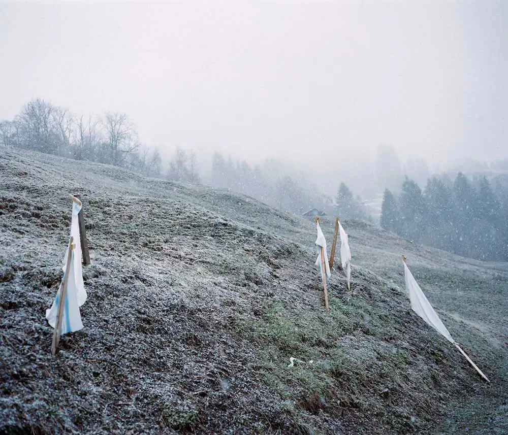 It’s about the idea of escaping from density and saturation in order to feel time and slowness again.“ “Berge bleichen” or “Mountains Bleach” takes place in the small valley “Val Lumnezia” in the Swiss Graubünden.