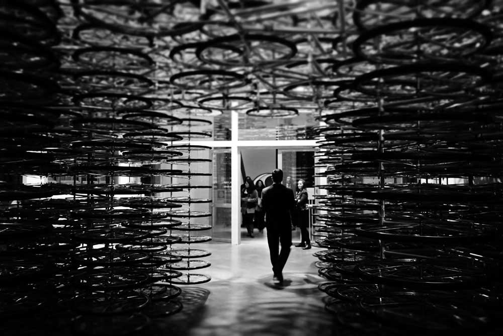 From words whispered on the grass in front of the National Gallery in Berlin – before entering – to the exit from the Venice Biennale, the present series aims at the movement of spectators and the changing of lights. These define the objects or the performers on display through manifestations and disappearances. Museums’ rooms thus become places where objects react to spectators: Caravaggio’s Medusa is screaming louder when in front of the crowd’s gaze, and Ai Weiwei’s wheels are patiently waiting for the visitors to be absorbed by the artist’s matter. The spaces of display are here organic forms, open to photography on condition that the eye will not be fixed on an object but on processes where light and matter play to compose new visions.
