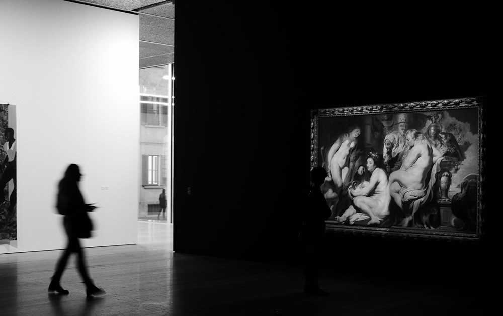 Display is a photographic project on spectators in museums’ spaces, or in places where the view is captured by the public exhibition of objects with poetic qualities.