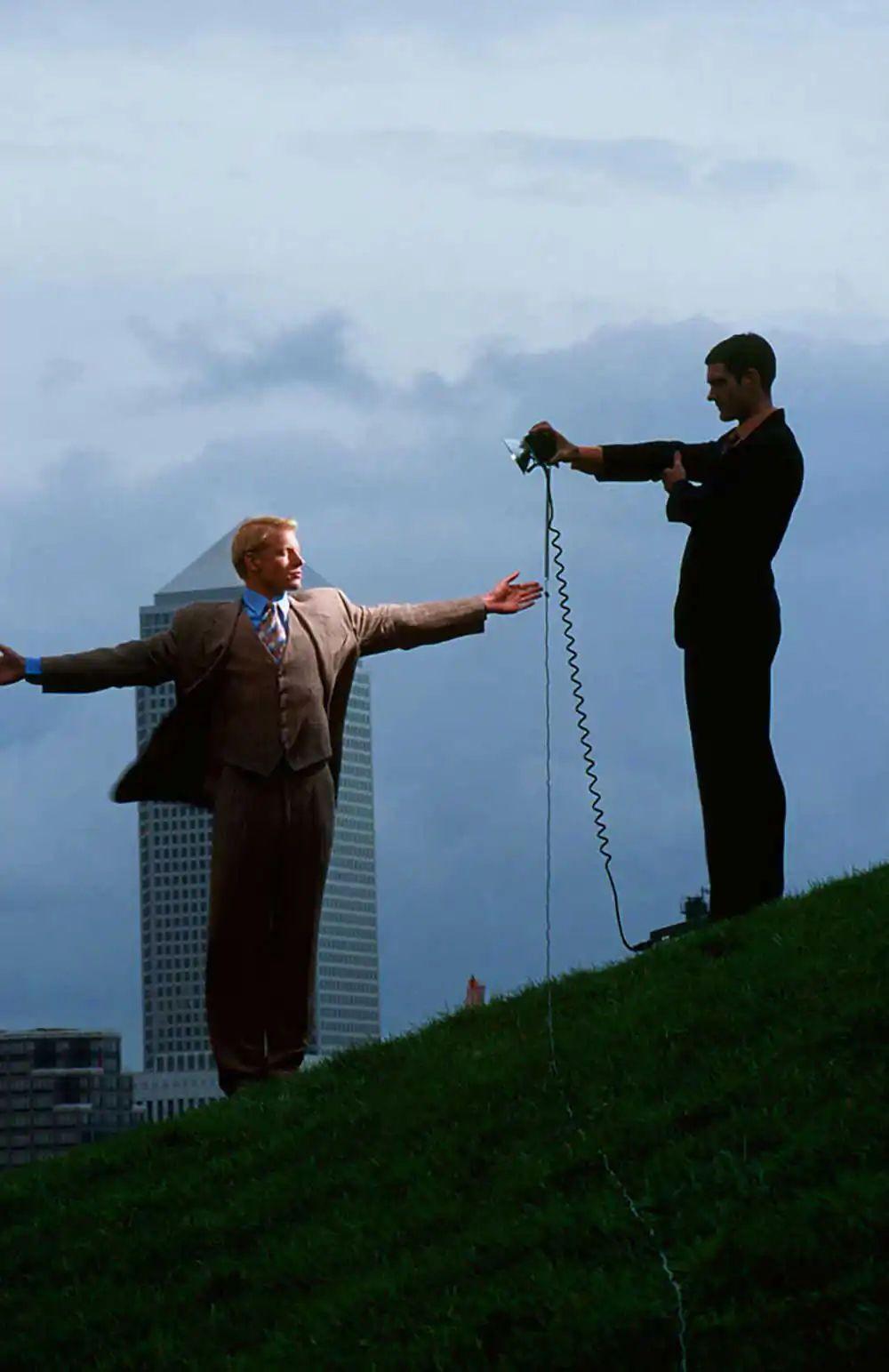 Nine years before, while out riding my bike, I had come across a manmade hill in the Docklands of East London. It was very steep and I thought it would be an ideal place to do a forced perspective set of pictures. Subsequently, from time to time, when I was passing, I would go to the hill and try to envisage what I would do there. One of the ways I come up with ideas, is to look through the camera and wonder what I can enact in the frame. I had come up with two compositions and had sketched them in my A4 refill pad.