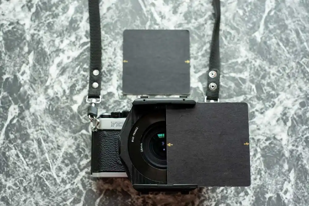 I would secure a Cokin filter adapter so that it did not move, then slide a square of black card into the adapter, shoot a frame, then cock the shutter without winding on the film (many cameras had a button that enabled you to do this). I would then butt another piece of card against the first then remove the first. F8 was the smallest aperture that could be used on a 28mm lens, otherwise you would get a black line. If the camera or the film did not move, it was almost seamless. Cokin had a slider that slid from one side of the adapter to the other between shots, which I started out with, but I preferred the card method.