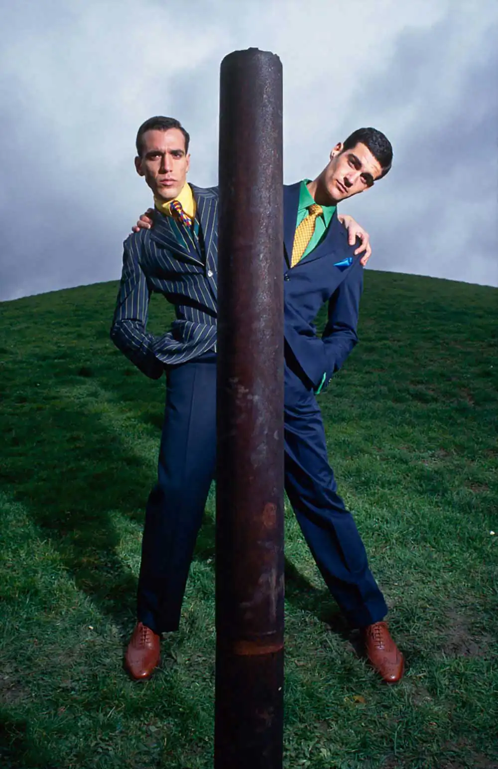 The pictures of the two guys either side of the pole was a double exposure. I don’t think I had heard of Photoshop when I took it. At that time digital manipulation was done by scanning film and editing them on ÂŁ100,000 dedicated work stations and was very expensive to have done. I did this the cheap way, using a trick I had learned in my first year.Â