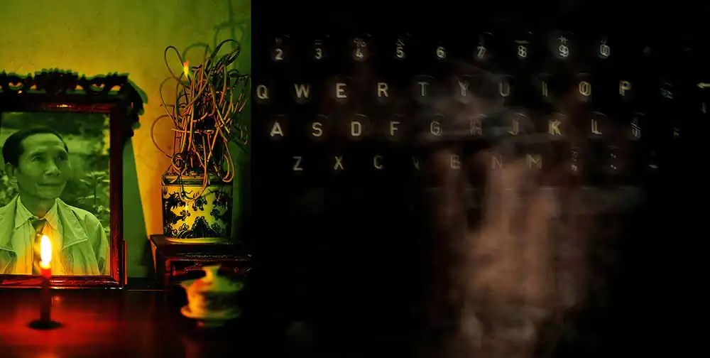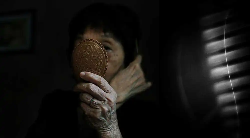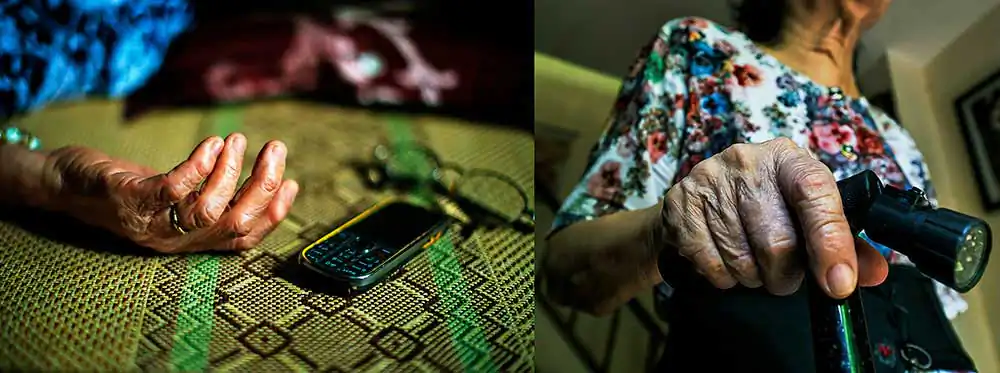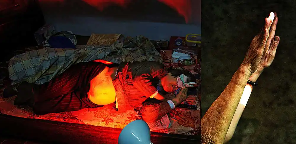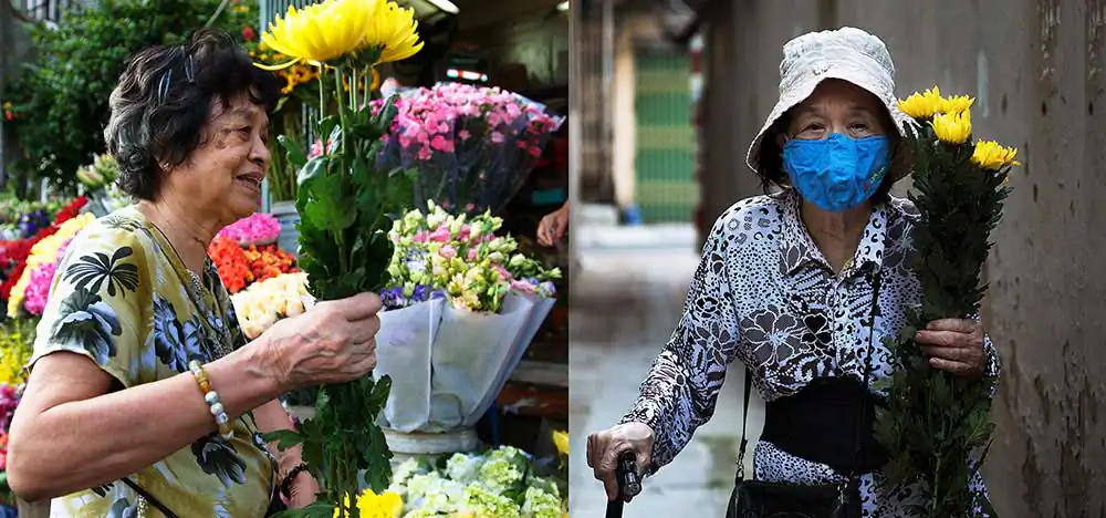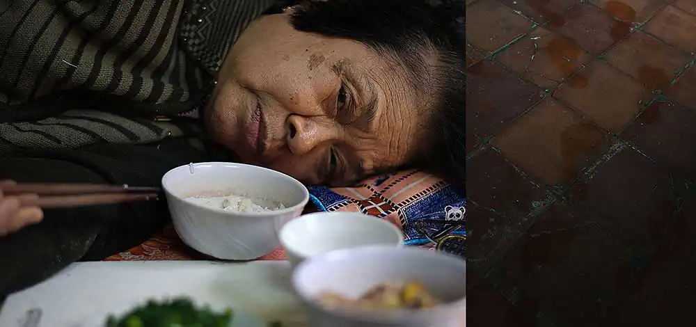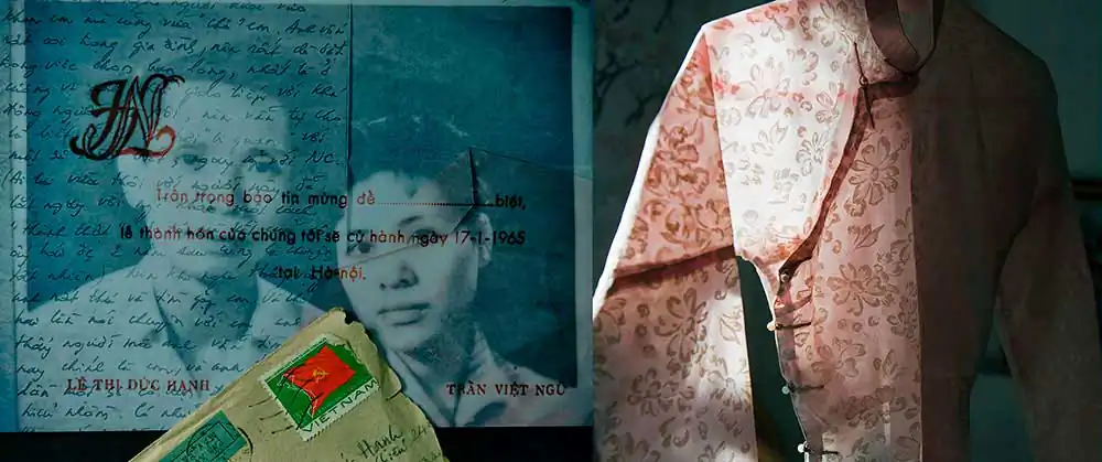 The time my mother had to lie in bed could not walk (February 2016). I remember her haunted sad eyesTo cure her illness, my mum takes medicine regularly, recites Sutras and prays Buddha every day. My mum was not a Buddhist, but she believed Buddha and Buddhism gives her peace of mind.In the evenings, my mum was exposed by infrared light to reduce the pain. I payed attention to the black shadow on the wall, the metaphoric potential of the red light, of her expression…My mum like brushing her hair in early morning. Although my mum is 88 years old, she still maintains the lifestyle of a lady based on Hanoi: elegant and sophisticated.My parents’ wedding cards from 1965 and the letters my dad wrote to my mum during the war years. My mother’s wedding dress in 1965 was the Ao Dai – the traditional dress of Vietnamese women. She still keeps them to this day.My mum is a good cook. This is my dad’s favorite food, especially fish.Once my mum said that if she had a future life she would still marry my dad. The couple have been holding hands together for 50 years. He passed away at the age of 88 when she was 81 years old. It was still a strong shock to her. She not only lost a husband but lost a soul mate. To her, his image is always present in the house, in objects and especially in her nostalgia.My mum went abroad twice. The first trip abroad was to Russia in 1985, the most impressive was the terrible cold snow. The second overseas trip was to China (Shanghai, Beijing) in 2006. My mother was most impressed by the high-rise buildings in Shanghai and the modern transportation system here.My mum has two sons – my big brother and myself. She has managed to raise her kids successfully, despite huge difficulties during the Vietnam war-time.My mother used to wait for me at the door when I return home from a business trip.My mother always buys flowers to put on the altar on the first and fifteenth day of every lunar month.My mother has fallen several times and each time she has won over herself.My mother felt very comfortable in the old house, even though we once intended to move, but after thinking about it, she stopped.My family likes to take selfies on the first day of Tet. Happy New Year 2022.The shoes which my mum wears most at ceremonies. She has been wearing it for many years even though it is very old now. My mum’s shoes symbolize a journey of striving to fulfill her dream.