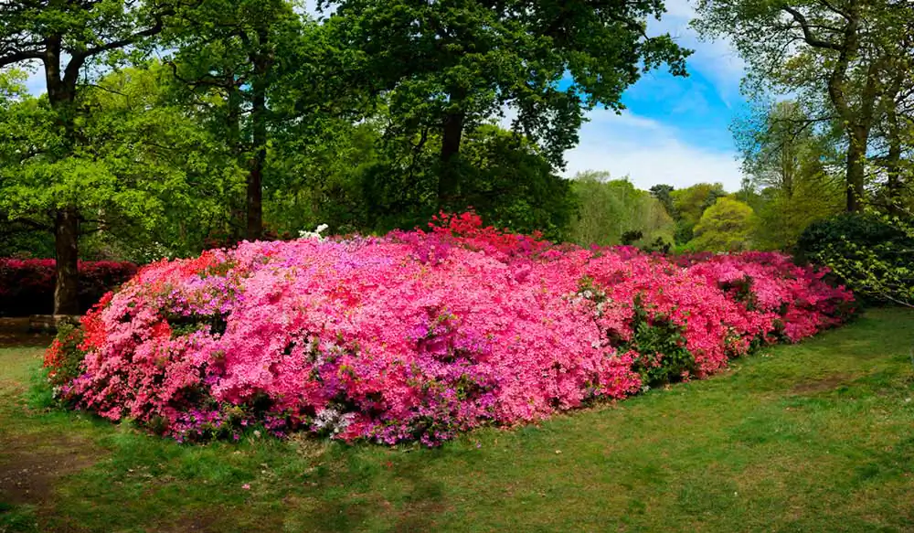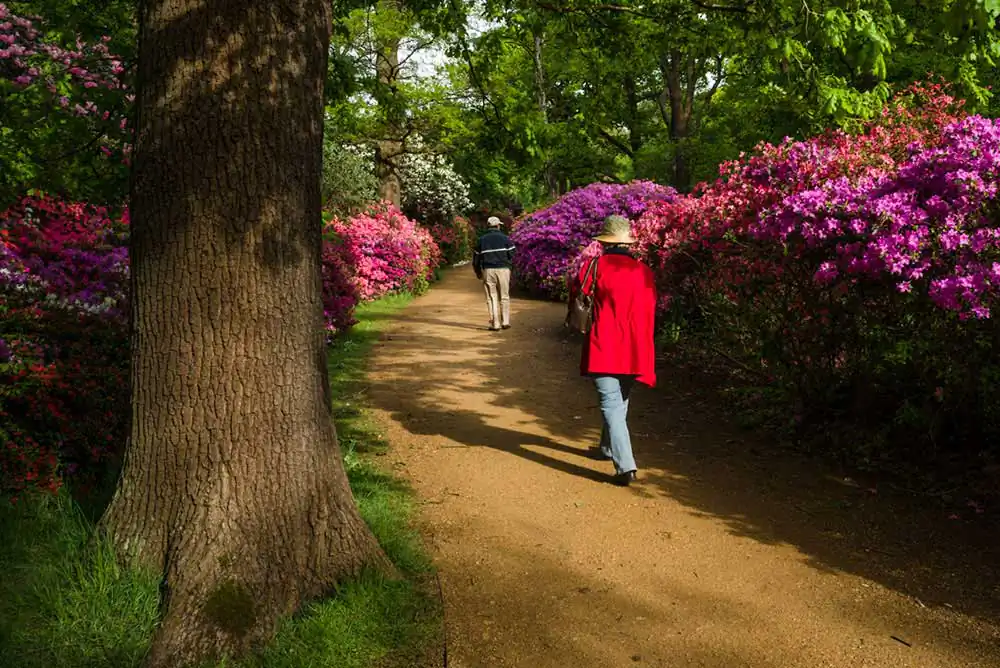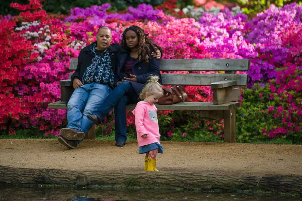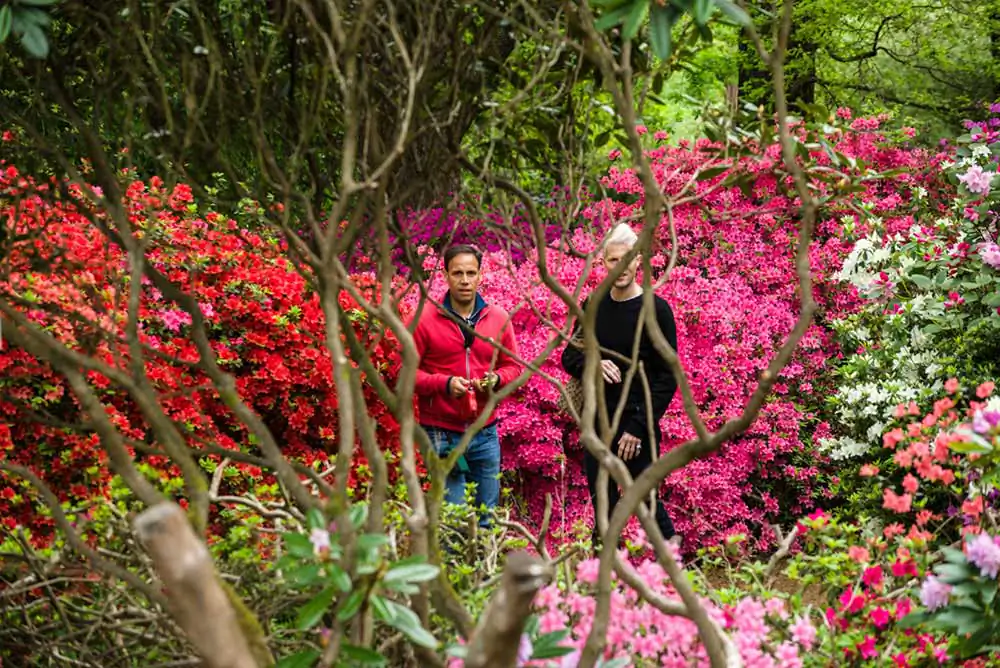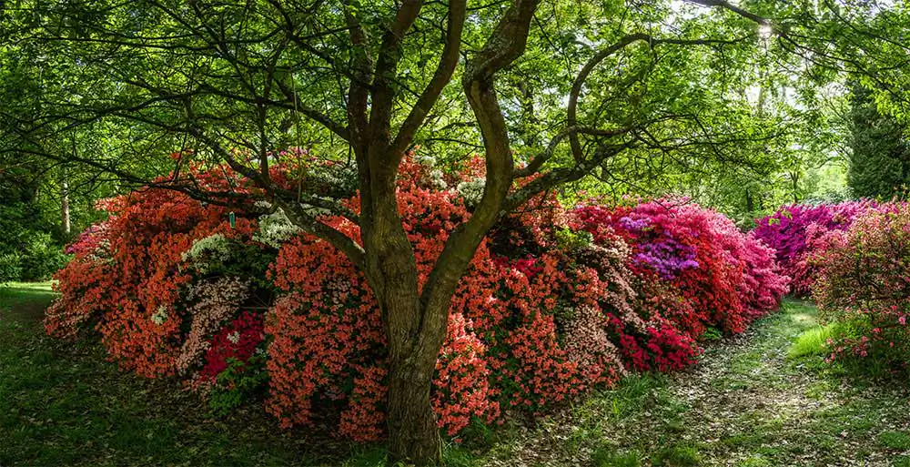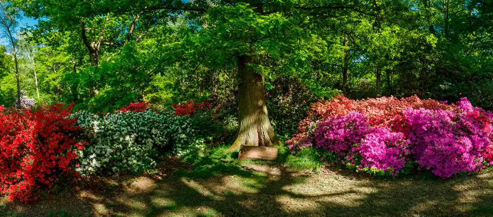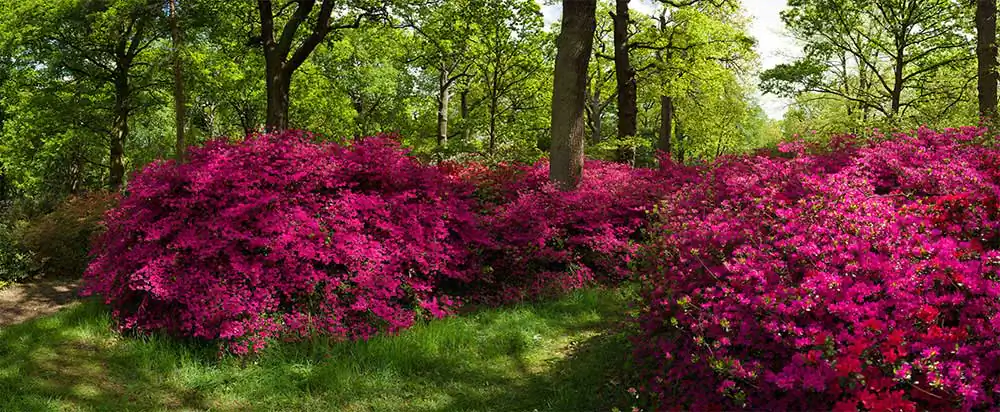 The flowering of the bushes was usually staggered. First The azaleas would bloom, then the rhododendrons but this year they both came out together. There was a riot of vibrant colour everywhere you looked. The last time I had shot panoramas, a few years before, it was shooting 360◦ panos on a tripod, which was a bothersome process. It was difficult finding environments that were photogenic in every direction. This time I shot them freehand and only pictured the most interesting bits. I began by just shooting the flowers, then decided to include people as well who were continually getting in the way in any case. I made several more trips there, turning it into a project.