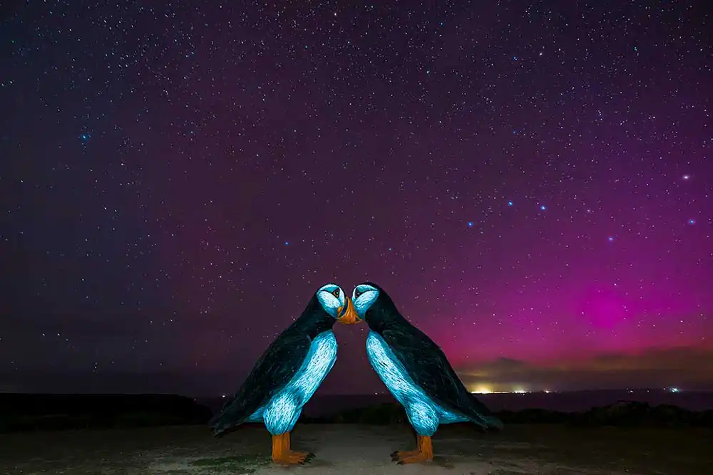 The inspiration for this project comes from her years of living on the island, observing her surroundings closely, and witnessing the extraordinary natural displays that Jersey offers each day. This year, in addition to the breathtaking sunsets she regularly captures, she had the opportunity to photograph the aurora borealis for the first time, a phenomenon that rarely graces the island. For a long time, she dreamed of capturing this spectacle, and though it is less intense to the naked eye than in photographs, its beauty was so striking that Anna will never forget it. With patience and dedication, she created countless compositions where the aurora subtly enhances the scenery, serving as a magical backdrop for some of Jersey’s most iconic locations