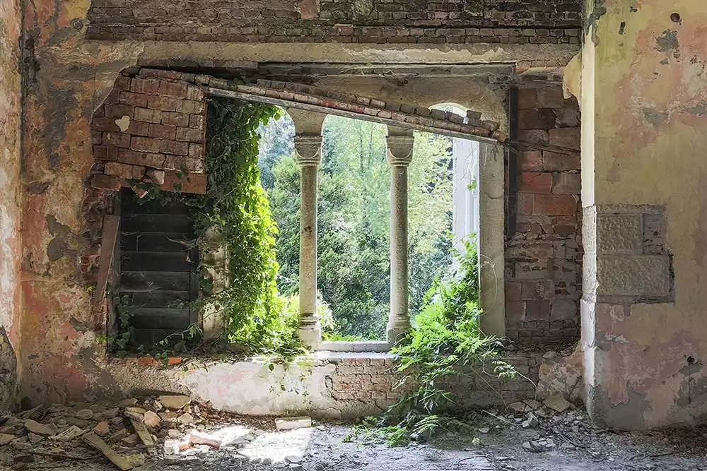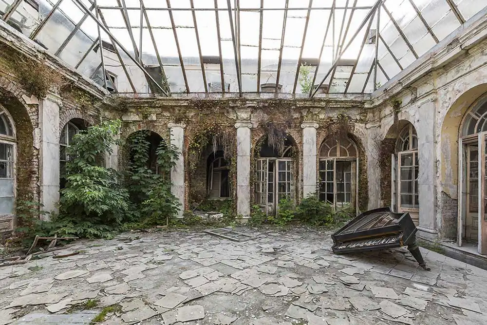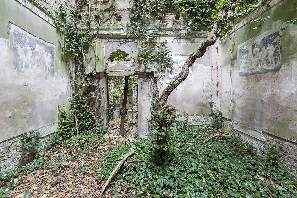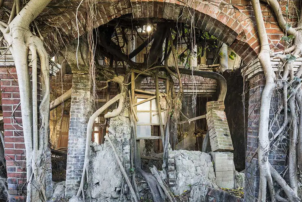 The series also tells a story: that of the progression of Nature, from her approach around the outsides, through the infiltration in abandoned places and the moment where She grows inside them, until their collapse. Burial comes next along with the disappearance of all traces of Man. In her inexorable progression, She starts reclaiming the outsides of an Italian villa (Photography 1) before infiltrating the insides of a Croatian castle (2) or a Belgian greenhouse (4). Then, She grows in the atrium of a Polish palace (7) or in a Cuban theater (8) before filling up all the space of a Montenegrin castle (12). Then, She guzzles the cross of a Belgian monastery (14) or given more time, imprisons two Taiwanese mansions with her strong roots (19 & 20). The next steps? Collapse and burial. When Nature and Time take back what Man abandoned, what will be left of our civilization?