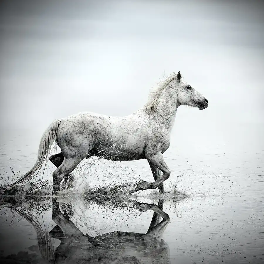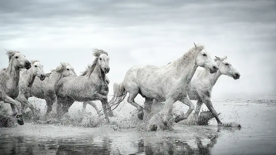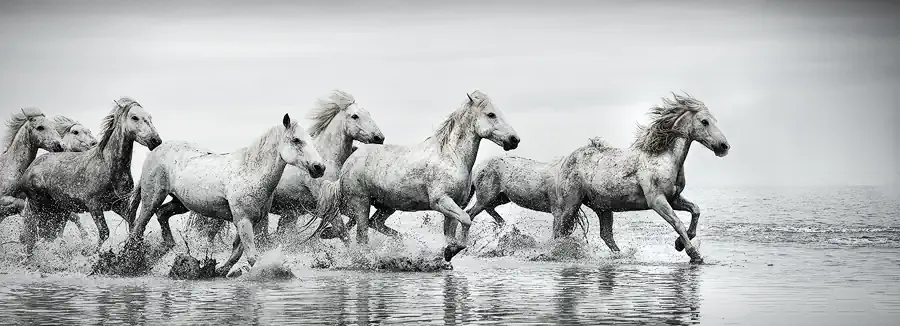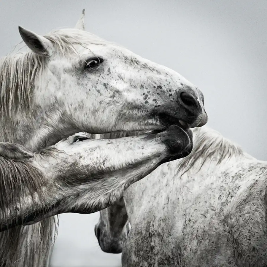 The closest I got to a shoot that was set up was when I did the horses in the Camargue. These horses are handled by the guardians who chase the horses on the beach or through the shallow water for you to take photos of. What initially draw me to photographing these animals was the sense of  freedom one experience when you see them running though the water or on the beach. Before this photographic experience I had very little contact with horses and while I was doing the shoot I was amazed at how easy it was to interact with the horses. So with this series of photographs I wanted to portrait both the sense of freedom of the horses as well as their power and interaction they have with each other. I thus tried to portray these elements in the series I did of these horses. This series have a slightly bluish tint as I wanted to emphasize a feeling of lightness and freedom and love.