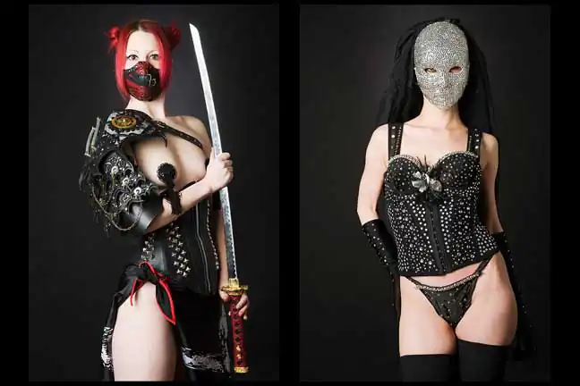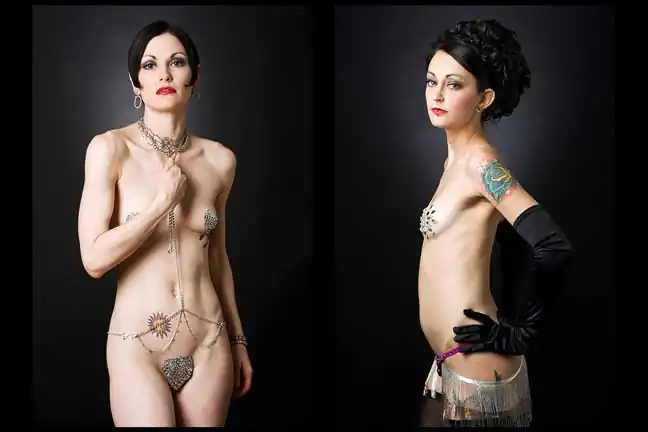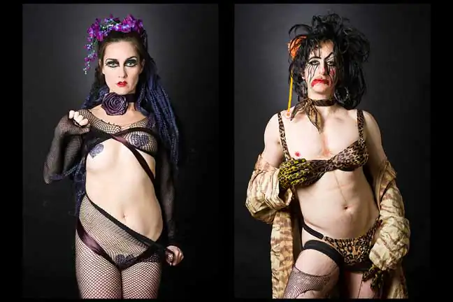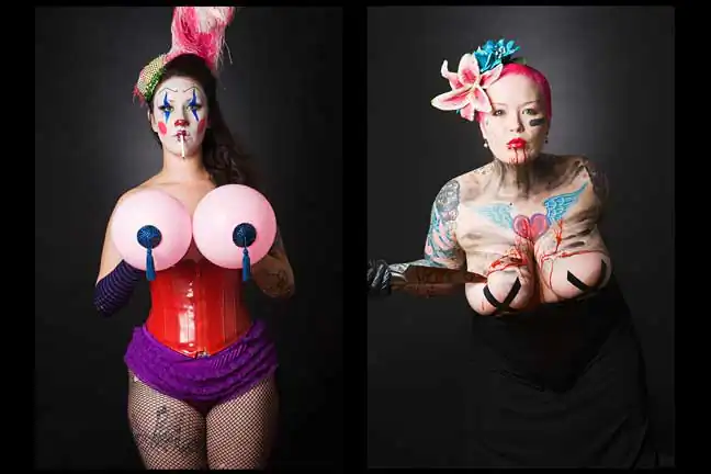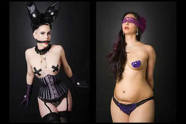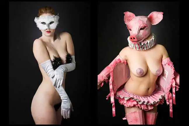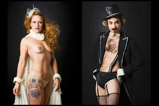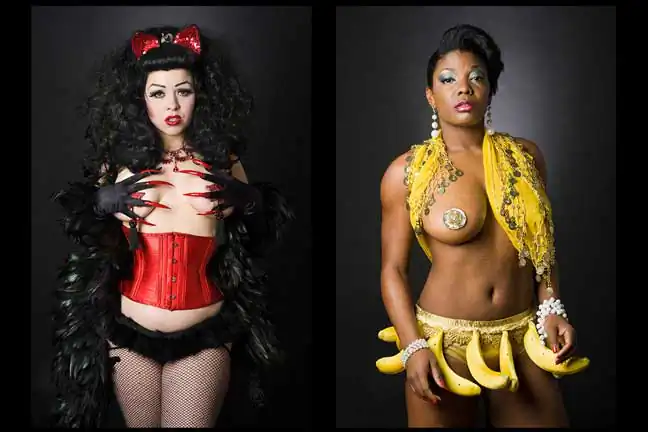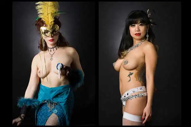 Leland Bobbé, alongside his producer wife Robin Bobbé, worked collaboratively with burlesque performers to craft images, which removed them from the stage and served to highlight the formalized essence of their character as individuals and as a persona.