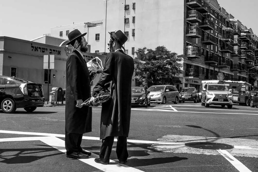 When strolling through NYC the scene suddenly changes. Baseball caps and shorts disappear from view.  Black coats, black hats, beards and ringlets take their place.