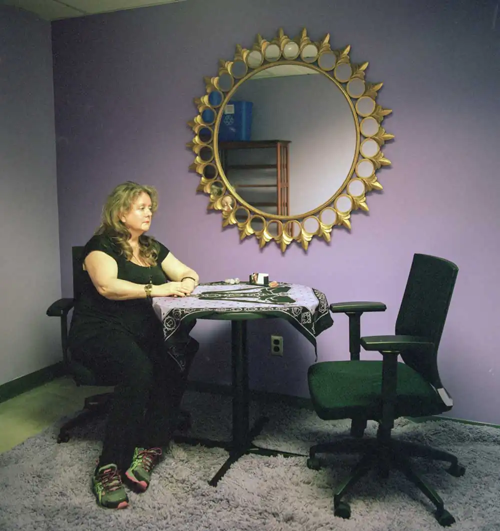 The little Keano flyer, which you can see in the corner of many advertisements’ frames in most subway trains, was the starting point of my journey within the community of New York’s psychics. I met about thirty psychics – after my first researches and encounters on that topic, I found so much articles about fake practises in psychic shops that I intentionally decided to avoid these ones – from Midtown to the Bronx going through Queens. They are Tarot card readers, mediums, palm readers, healers, etc. I found them via Google, Yelp and word of mouth. Eventually I portrayed half of the ones I met.