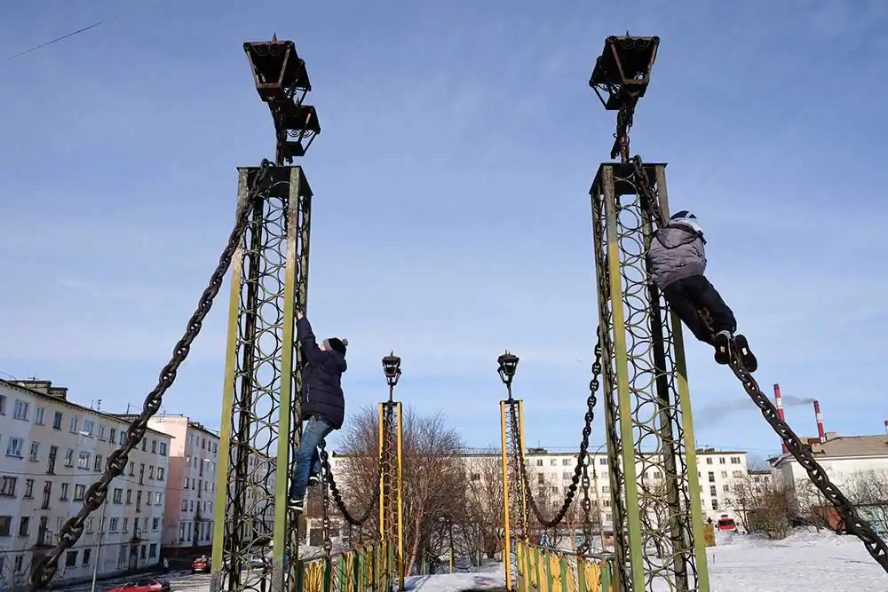 Children’s Playground in NickelKolosyoki River near the Pechenganickel PlantMiners go after working from the Severny mineGarden near the checkpoint at the Severny mineStreet clothes dryers near the Pechenganickel plantManoshina Lyudmila Alekseevna — hairdresser in the House of Culture SunriseArt object “Wind catcher” near the Pechenganickel plantSetting a new locality name indicatorProduction of scenery in the House of Culture “Sunrise”Pechenganickel plant on the background of Nickel housesVocal studio “Mosaic” at a lesson in the House of Culture “Sunrise”Water pump on the Kolosjoki RiverRoad worker in the tundraNickel animal shelter “Paws and antennae”Arthur and Andrey, people with no fixed abodeThe Papa May group after a rehearsal at the Sunrise Culture House. Shulga Alexander, Gashov Igor, Alexandrov Sergey, Glukhov SergeyPool in the sports complex “Metallurg”Lenin Square in NikelHousing and communal services employee in the rest roomKids play in the yardHousing and communal services employees go on a callEmployees grow flowers at the Severny mineKataeva Anastasia Vladimirovna, employee of the Nickel animal shelter “Paws and antennae”Kobudo Federation in NickelThe child calmly walks alone in the yard