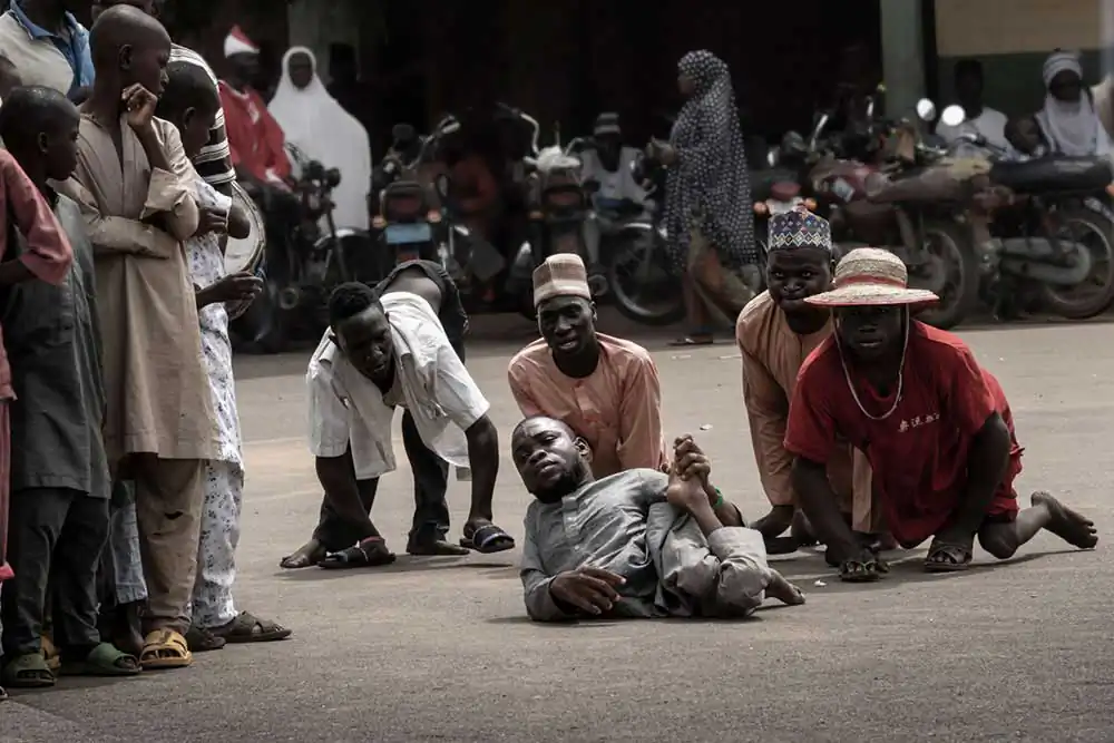 Thus, we arrived one day at the gates of the palace of Emir Babakari III, where we witnessed one of the most ancient rites of the gwari tribe. I had the impression of returning to the Middle Ages, living with a people that prostrates themselves before their monarchs, their “benefactors” who, as in the past, continue to control the lives of millions and millions of vassals. To them, they throw the crumbs, making them dance to the rhythm of their whims, extravagances. There is no middle class here, either you are in power or in extreme poverty. The people live suffocated and can only pay homage to their masters. However, its ancestral wisdom is still alive and latent, which shamans and priestesses feed with their potions, songs and the amazing sound of drums and trumpets that connect with the afterlife.