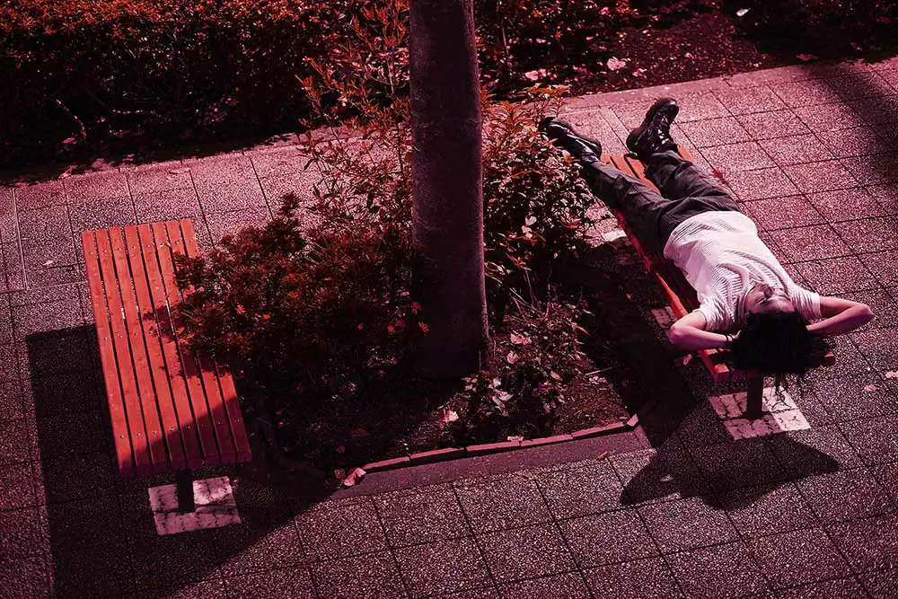 A man and woman appear in an unusually red atmosphere in this story. They hardly look at each other. In fact, they are incapable of looking at each other. They are also unable leave each other. Particular love does not seem to intervene between them. The two do not know why they are together.The characters in this story are embodying those who cannot look directly at themselves.